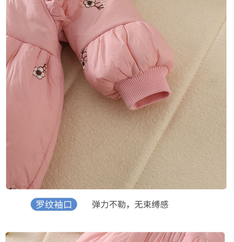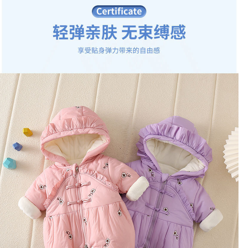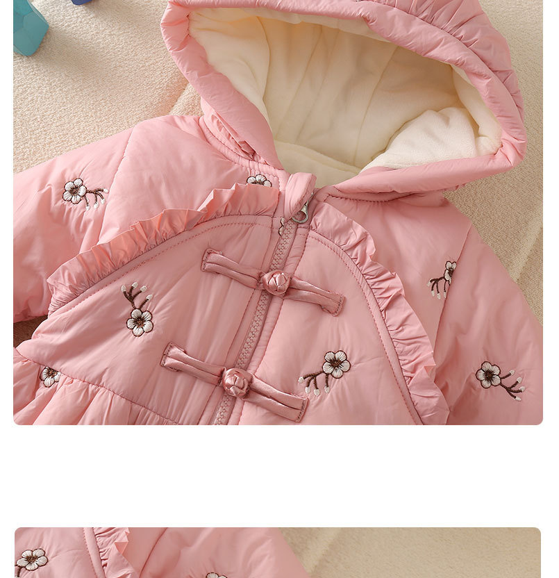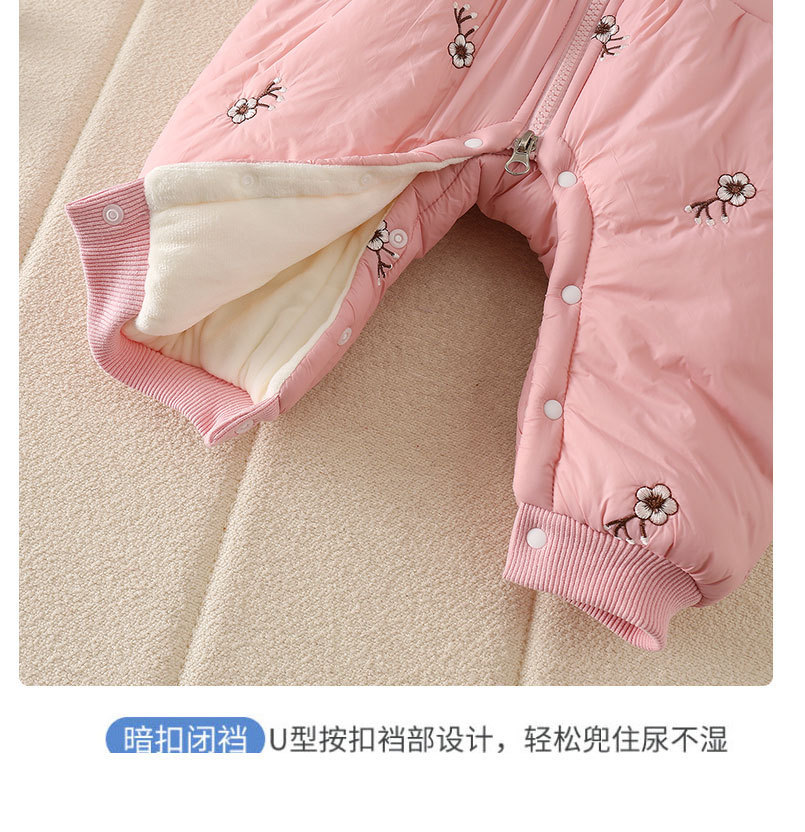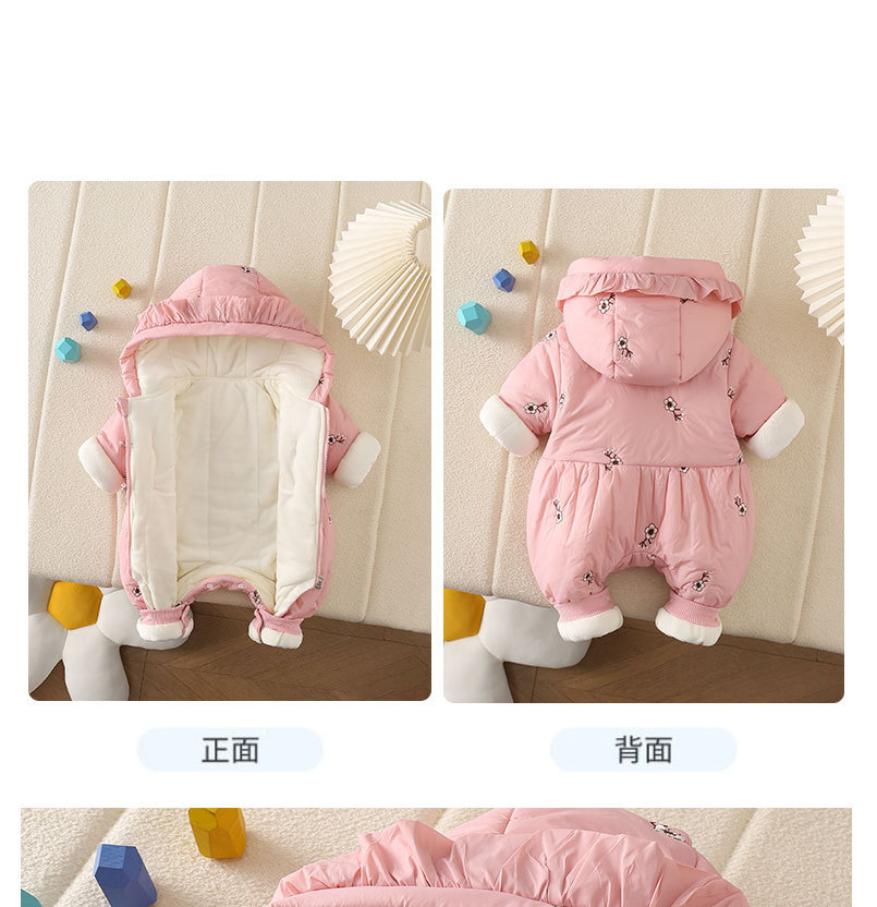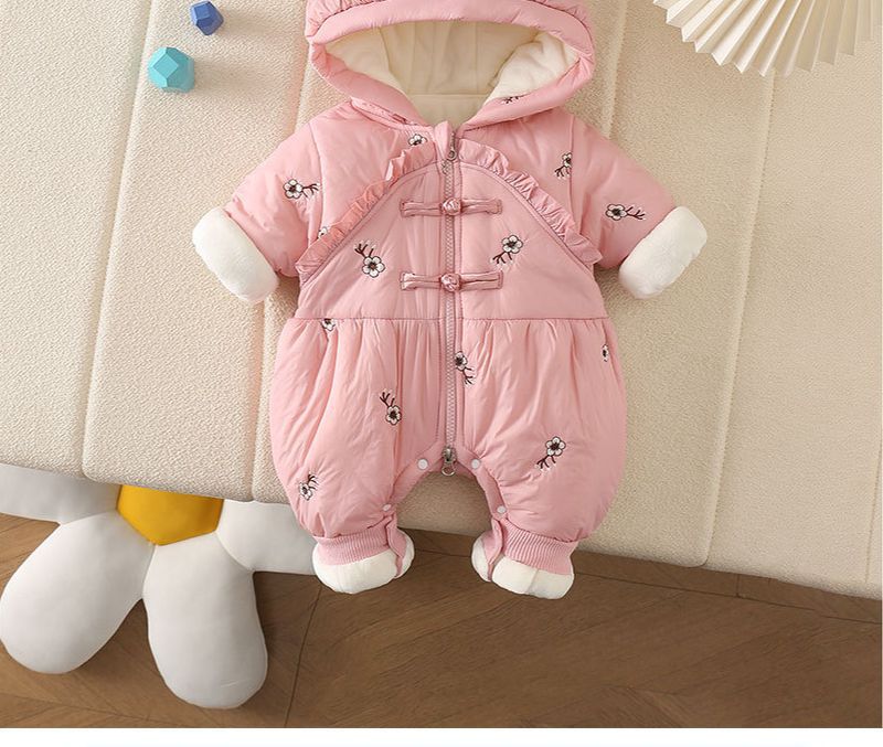 Abrigo de una pieza con tapeta con cremallera para bebé, engrosado y vellón con capucha 6-12 meses de salida, mamelero de algodón grueso bordado con capucha