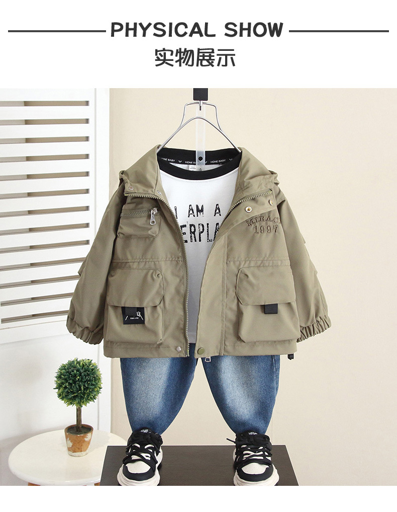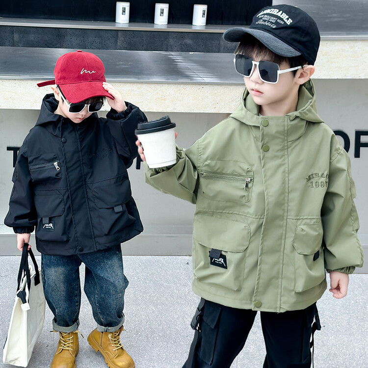 6256 Chaqueta para niños Chaqueta cortavientos de primavera y otoño para niños de moda de otoño 2025 nuevos tops con capucha para niños
