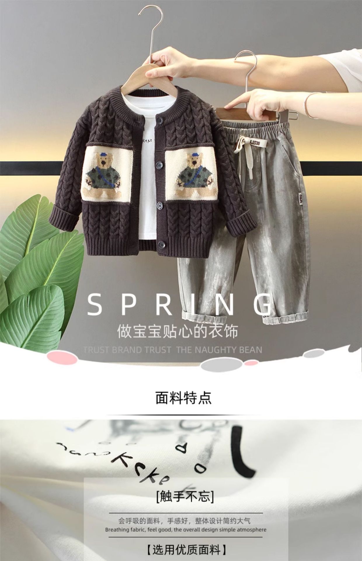 6158 Traje de otoño para niños 2024 Nuevo estilo de moda para niños de primavera y otoño chaqueta de suéter traje de tres piezas para bebés