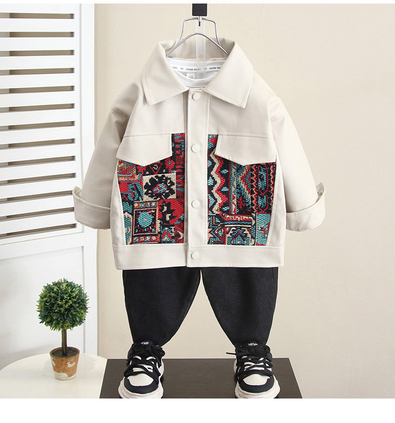 6173 Chaqueta de cuero de estilo occidental para niños modelos de primavera y otoño 2025 nueva ropa para niños chaqueta de estilo étnico de otoño bebé