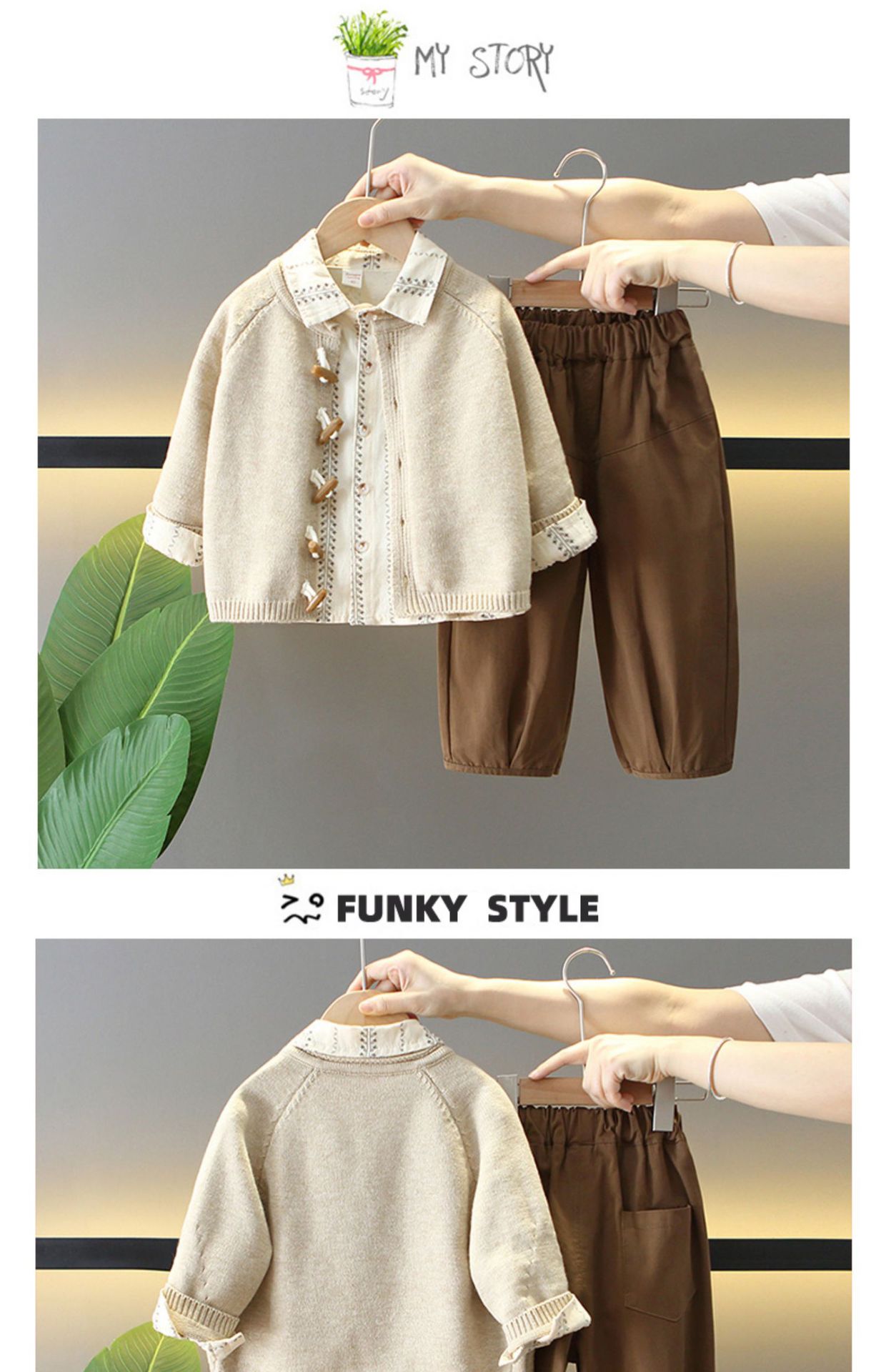 6147 Traje de otoño para niños 2025 Nuevo estilo Estilo occidental Chaqueta de suéter para niños Traje de tres piezas Ropa de primavera y otoño para niños
