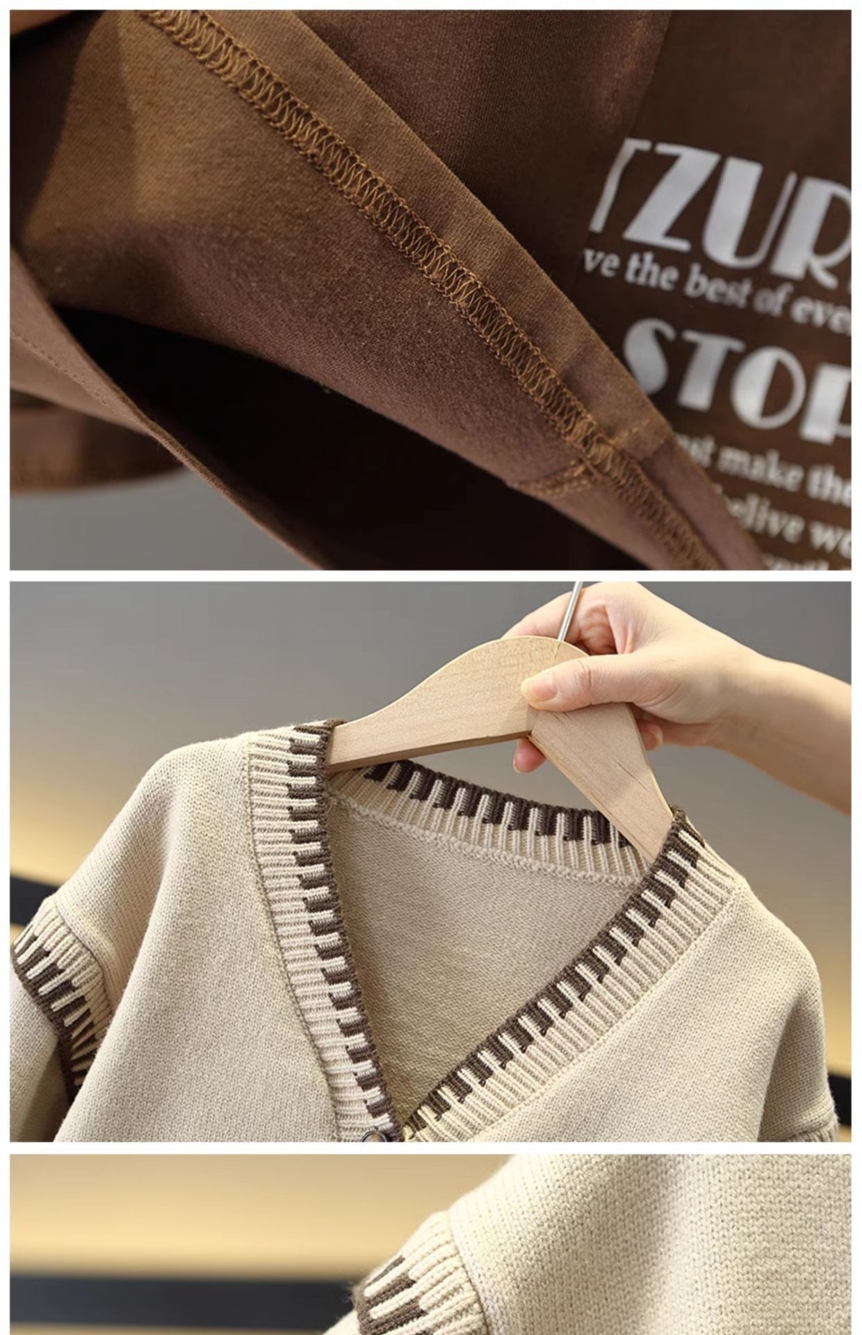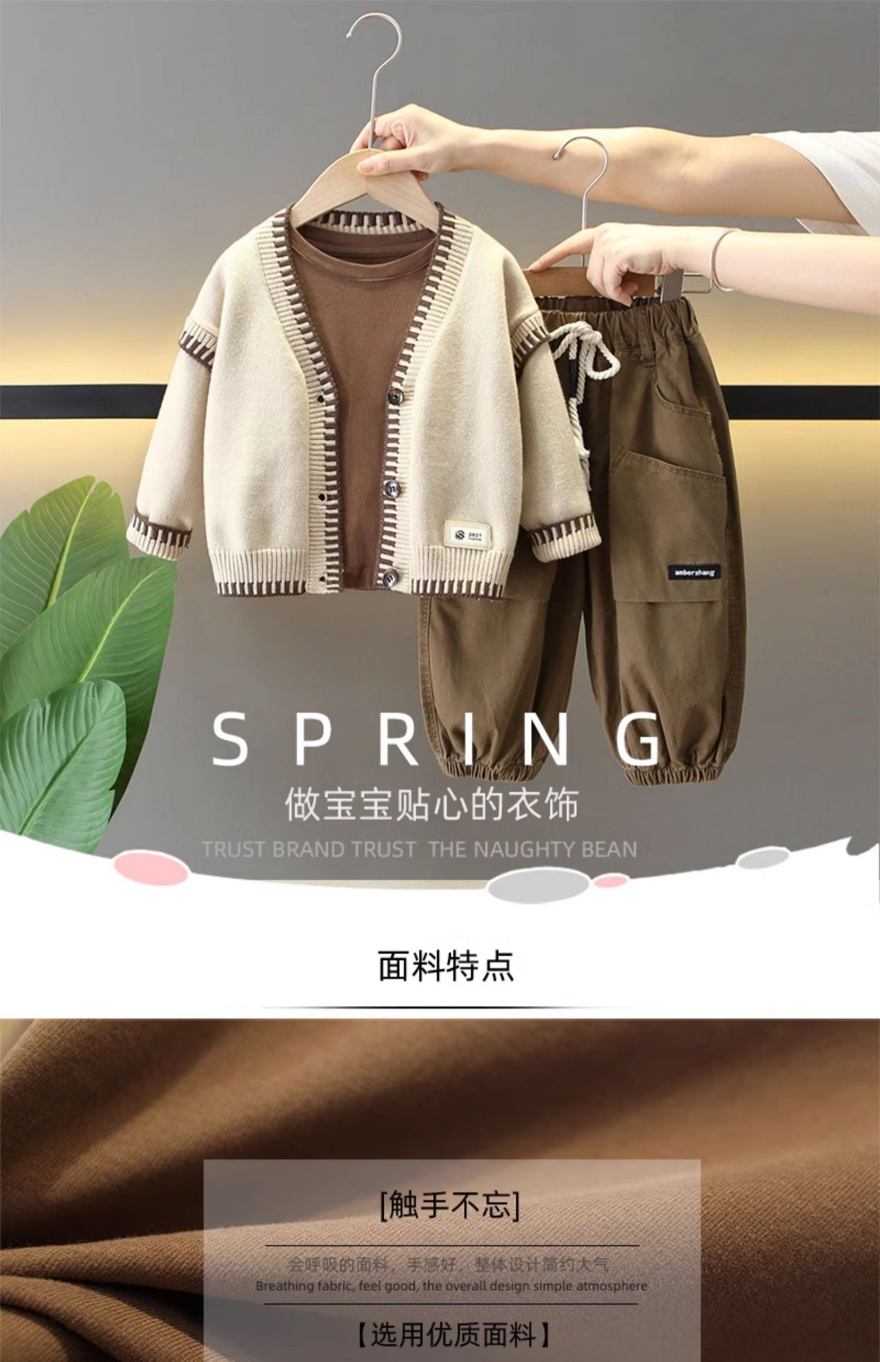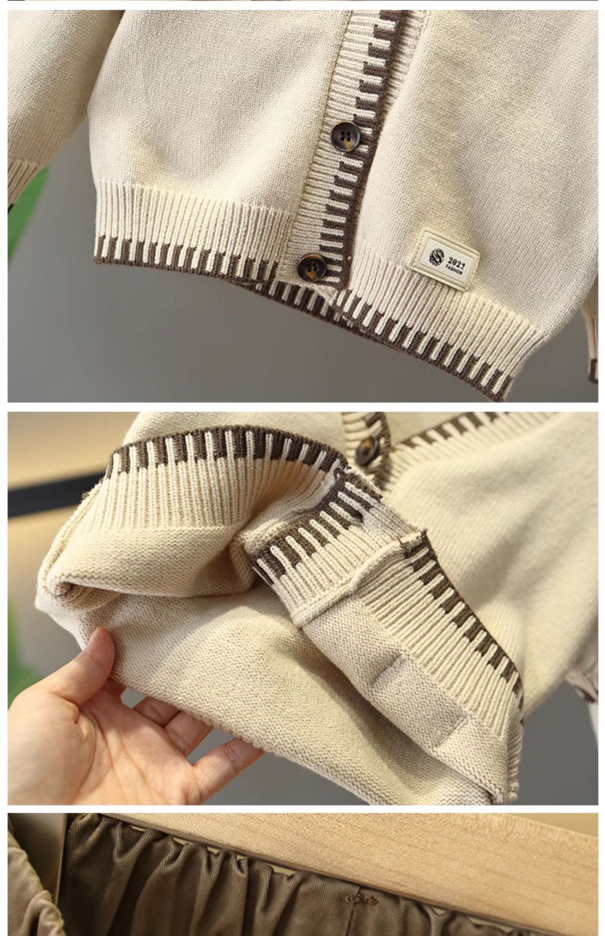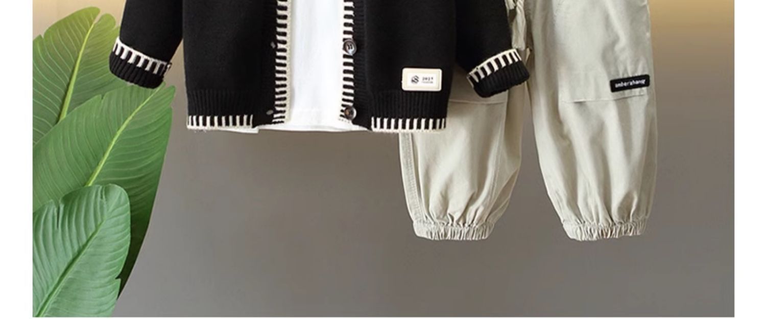6149 traje de otoño para niños 2025 nuevo estilo estilo occidental suéter para niños chaqueta traje de tres piezas bebé primavera y otoño versión coreana