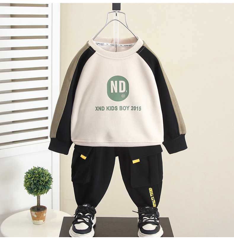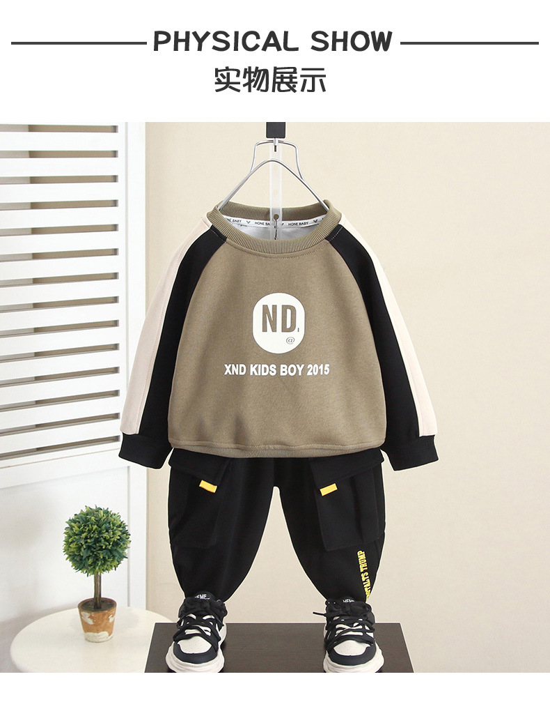 6153 traje de suéter para niño 2025 primavera y otoño nuevo bebé otoño top de manga larga de dos piezas mono para niños