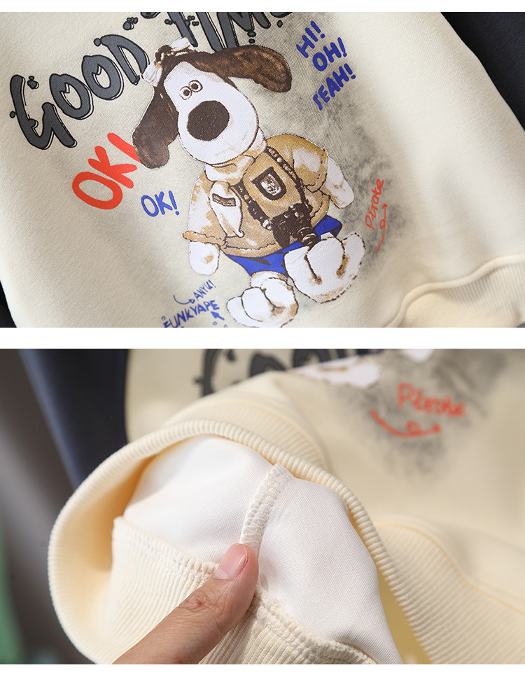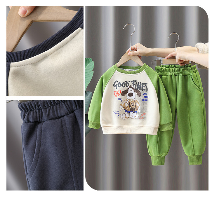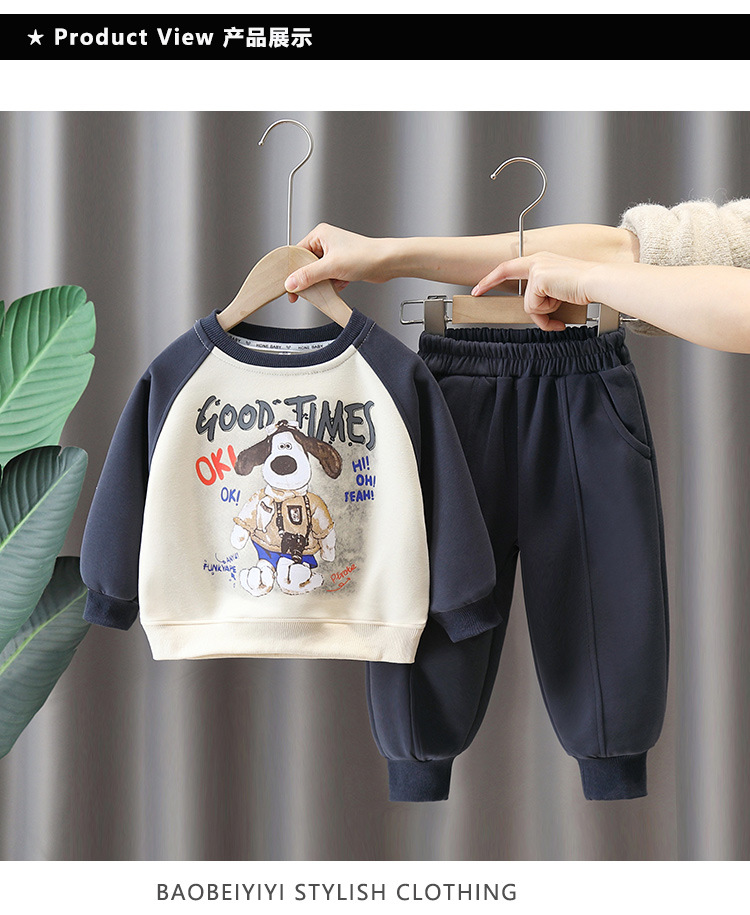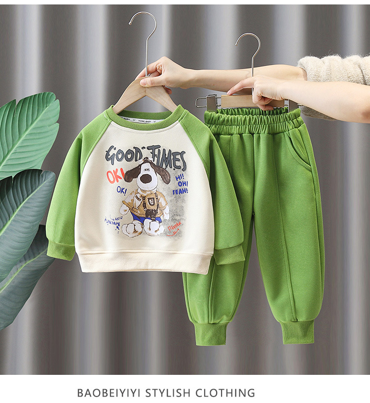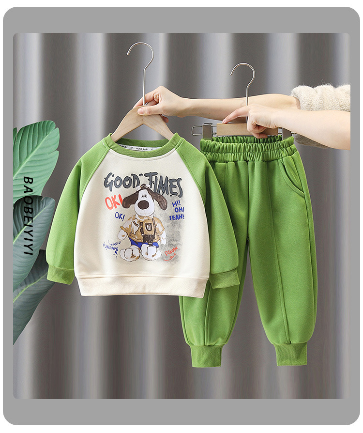 6161 traje de suéter para niños primavera y otoño 2025 nueva ropa de dibujos animados para niños bebé otoño neto de dos piezas