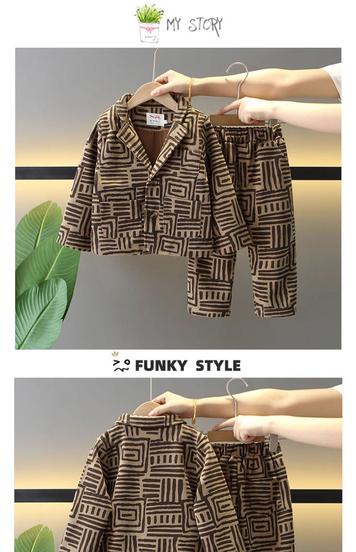 6140 Traje de otoño para niños 2025 Nuevo estilo Traje de primavera y otoño para niños de estilo occidental Traje de dos piezas Traje de bebé