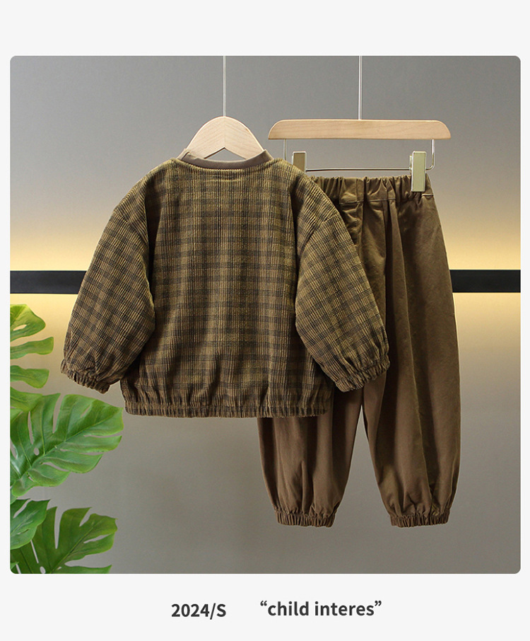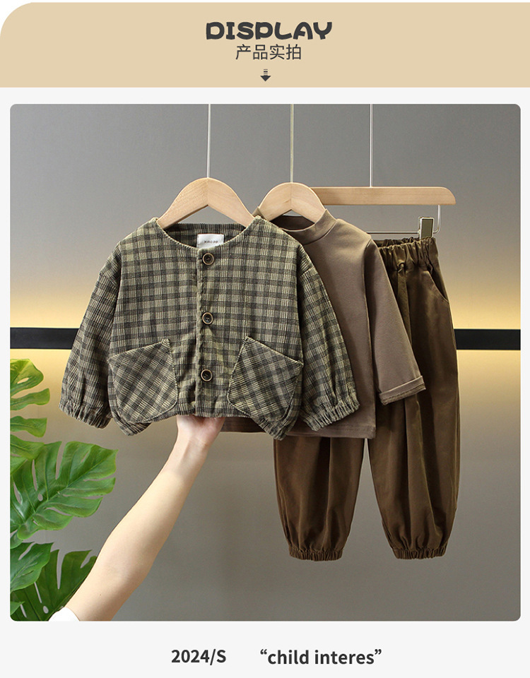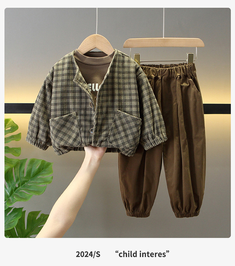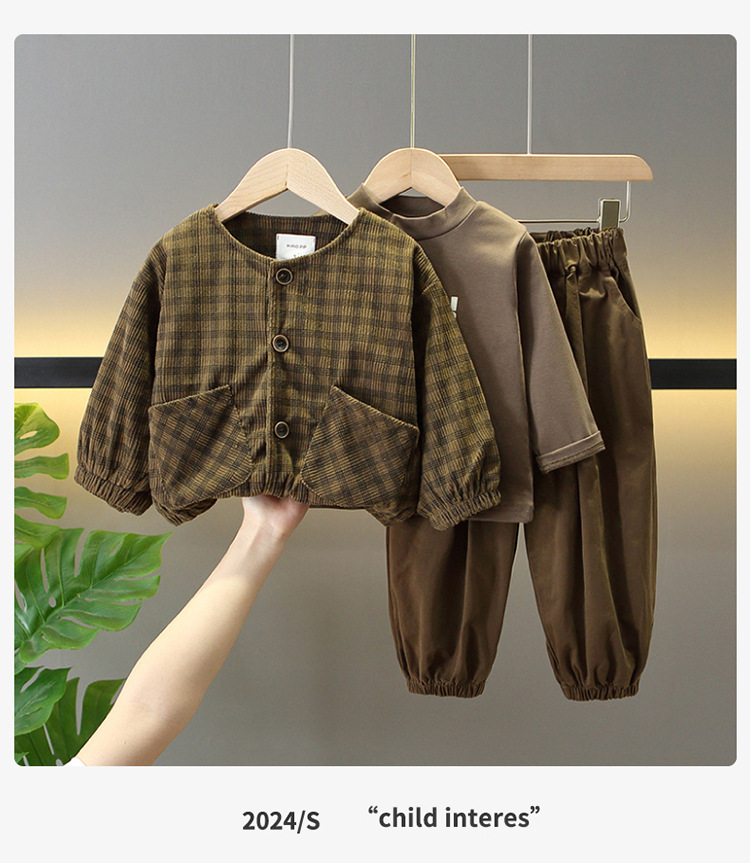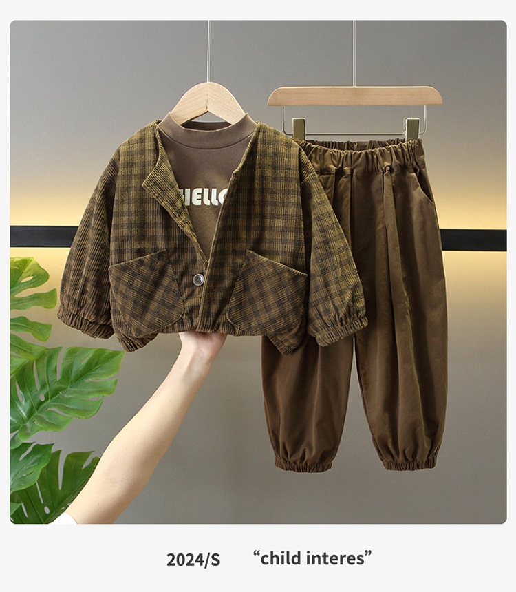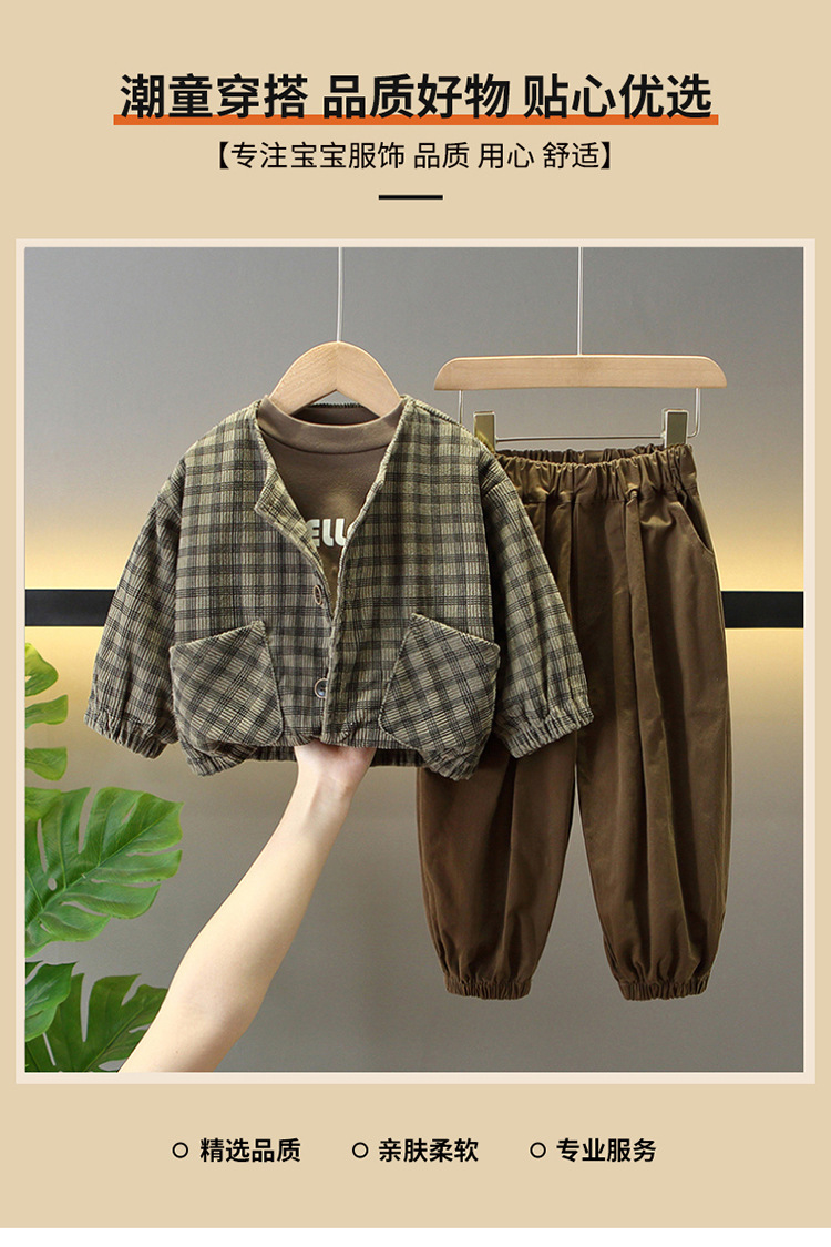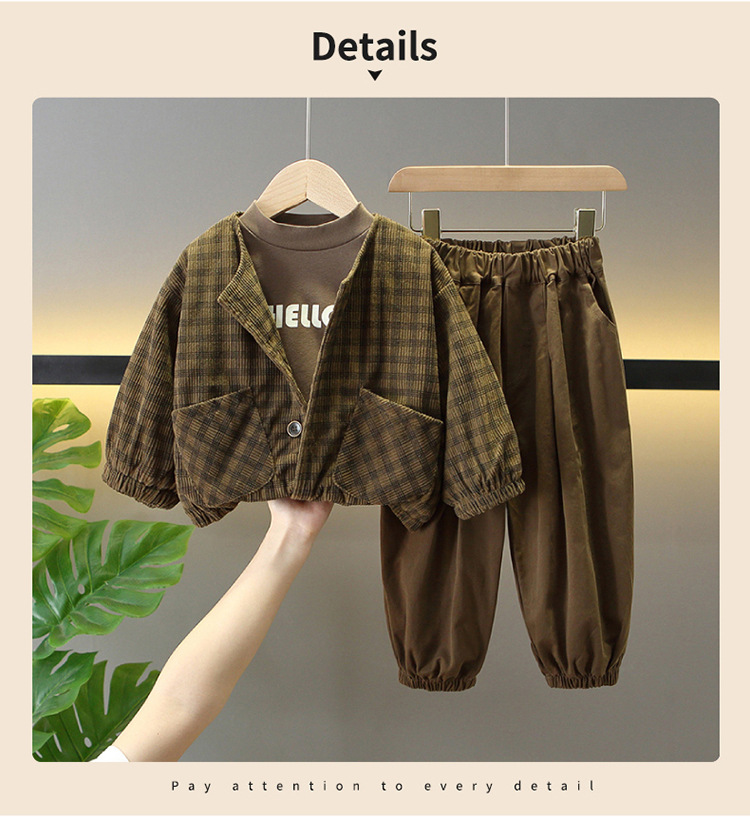 6133 Traje de otoño para niños 2025 nuevo estilo Chaqueta de pana para niños pequeños y medianos traje de primavera y otoño para bebés de tres piezas