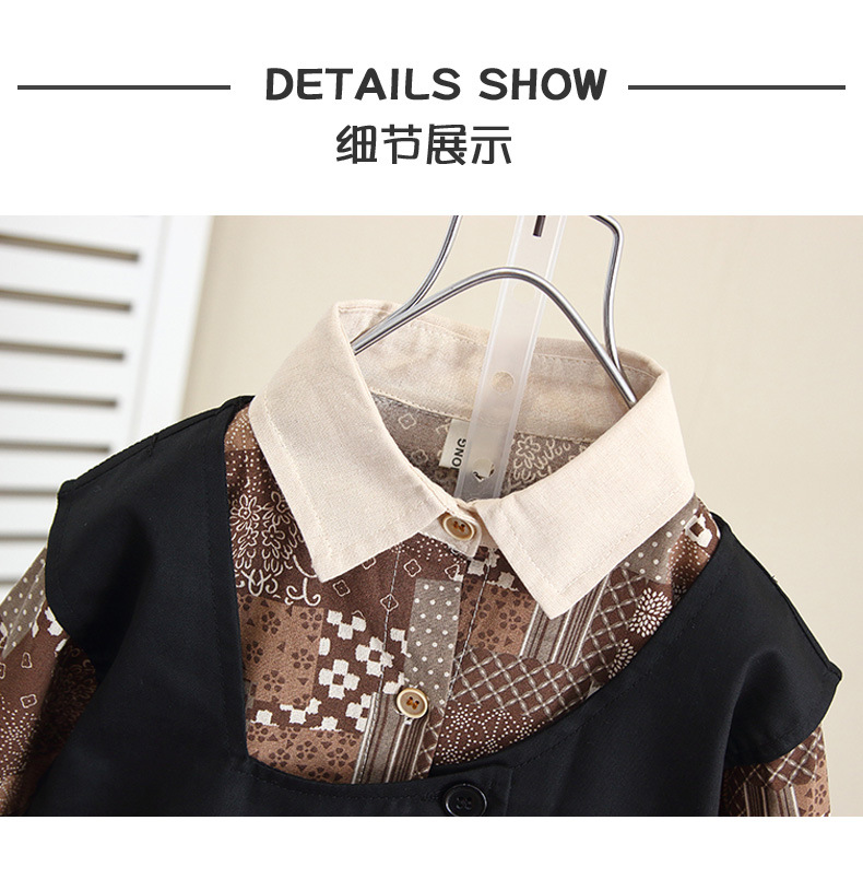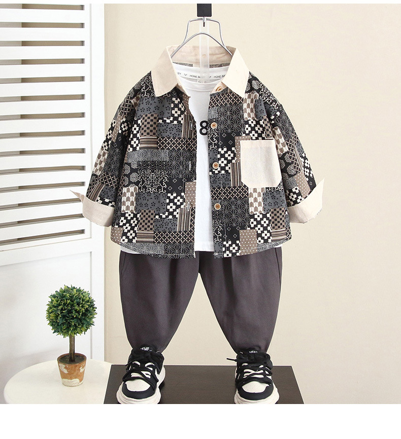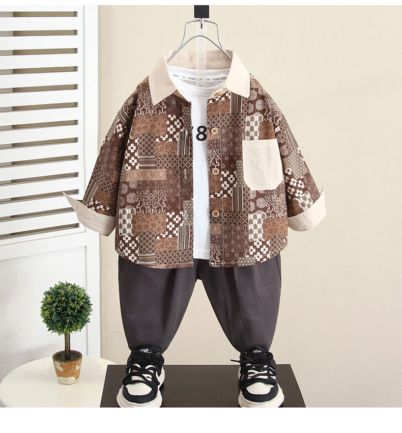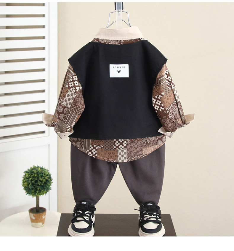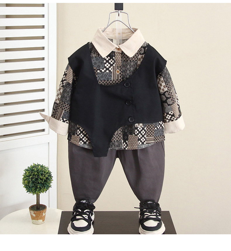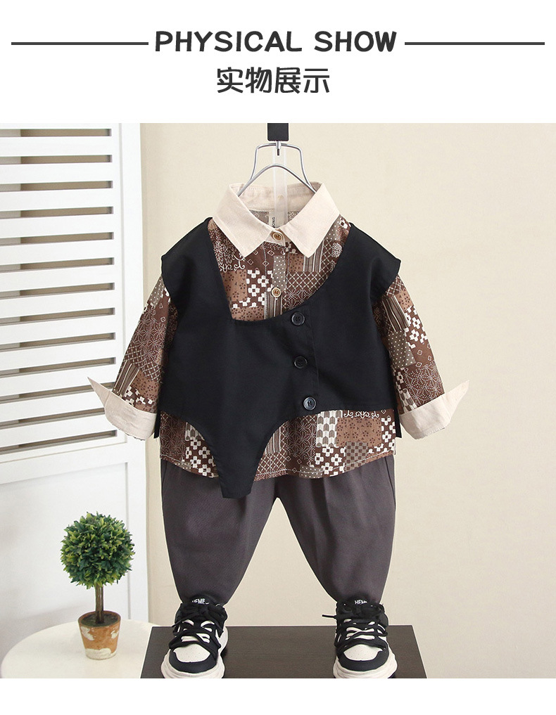 6076 niño primavera y otoño camisa de flores de moda traje de tres piezas traje de chaleco de otoño para niños guapo de moda 2024 nuevo niño