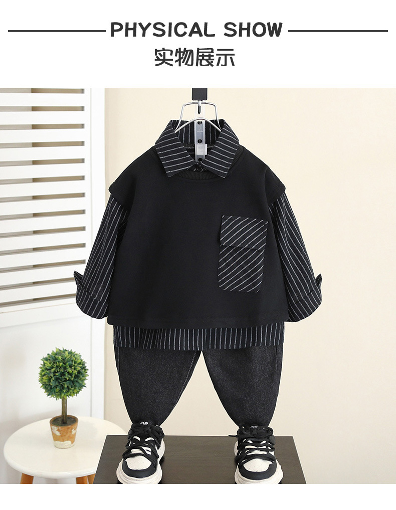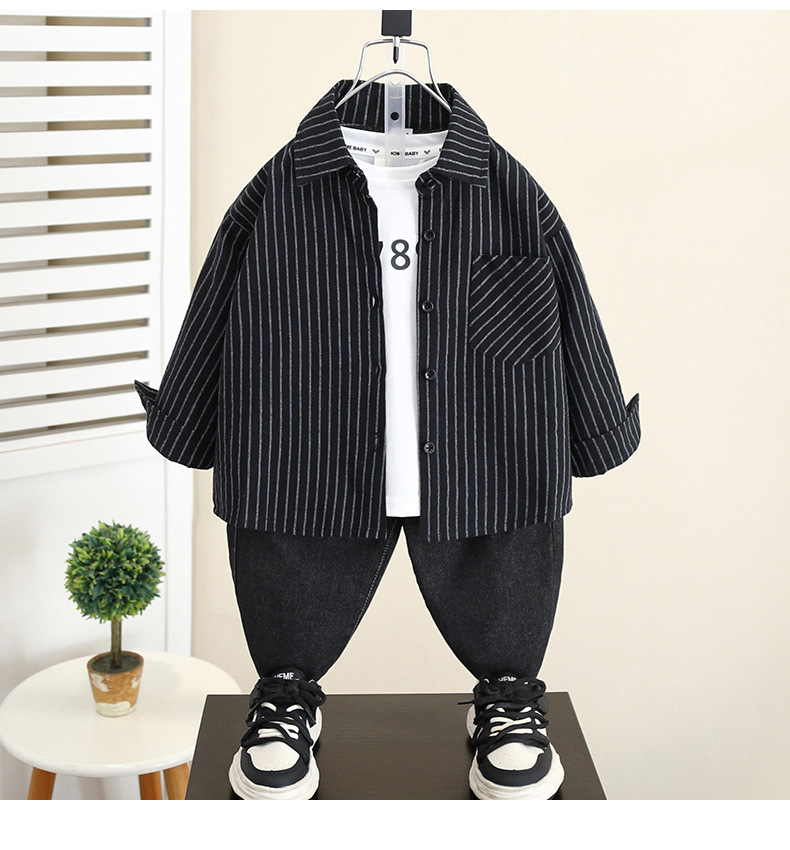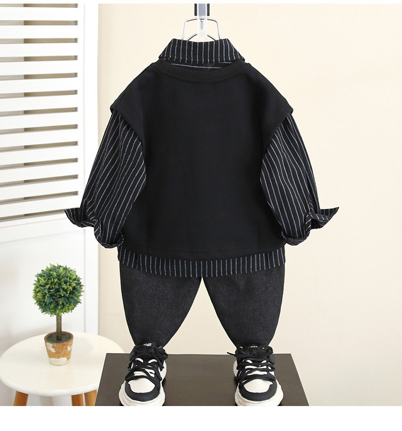 5991 Traje de otoño para niños 2024 Nuevo estilo Cool y guapo Camisa a rayas para bebés Chaleco de dos piezas Primavera y otoño para niños