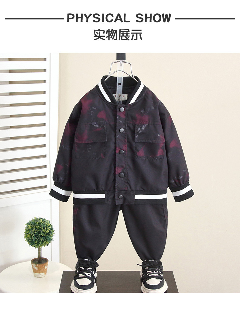 6058 Traje de otoño para niños 2024 Primavera y otoño Nuevo estilo de primavera y otoño Bebé guapo traje de béisbol callejero de dos piezas para niños