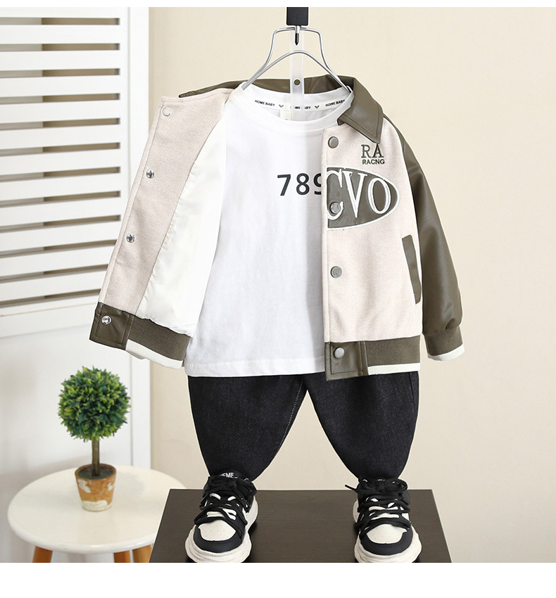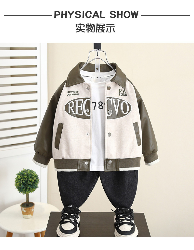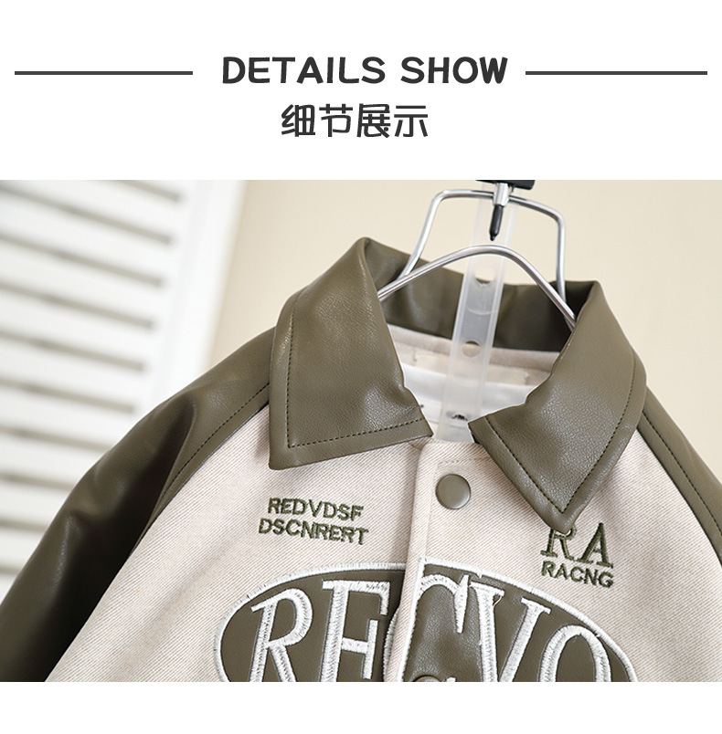 5993 Chaqueta de cuero de la calle frita de otoño para niños 2024 Primavera y otoño Nuevo estilo Chaquetas de otoño para bebés geniales y guapos Chaqueta coreana