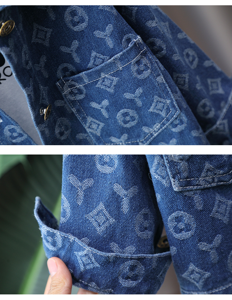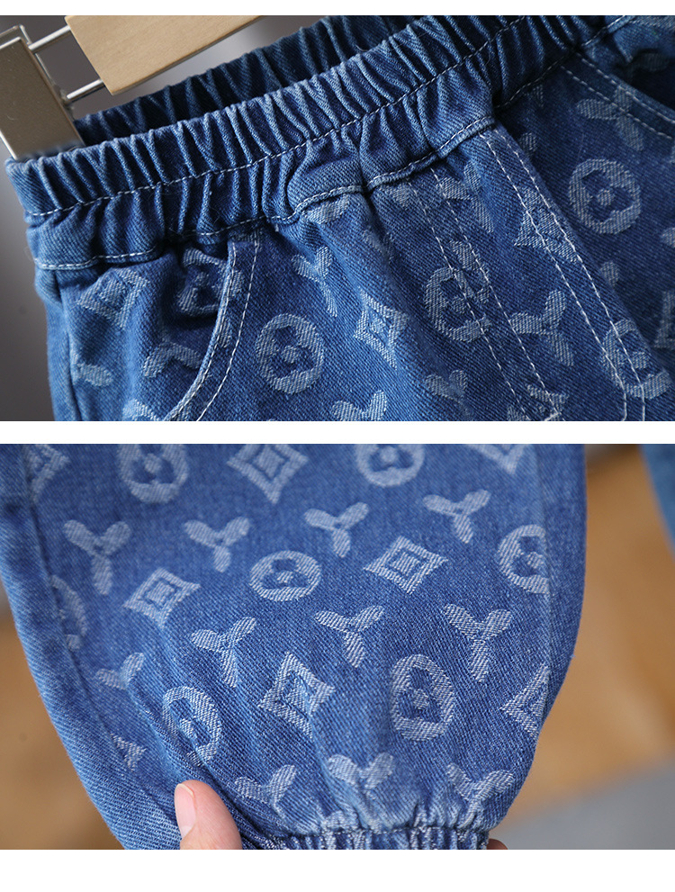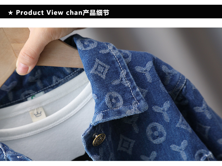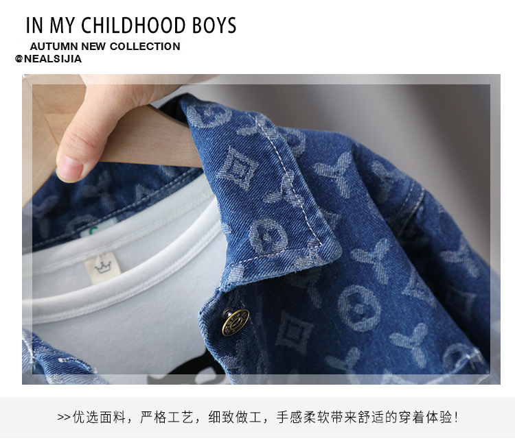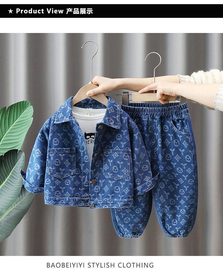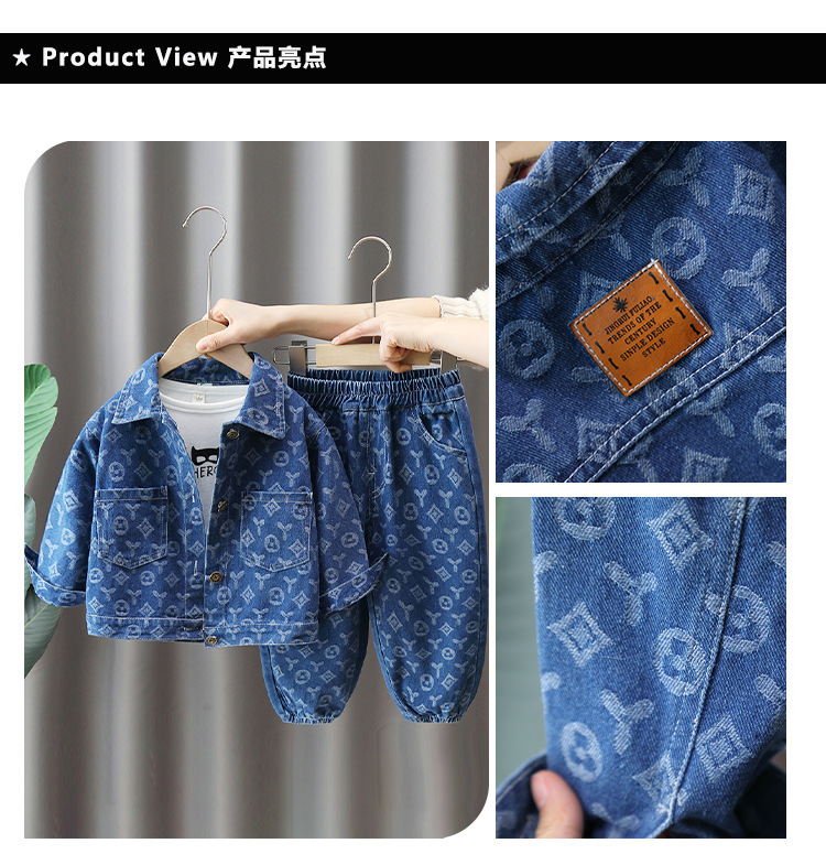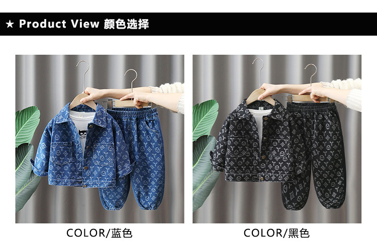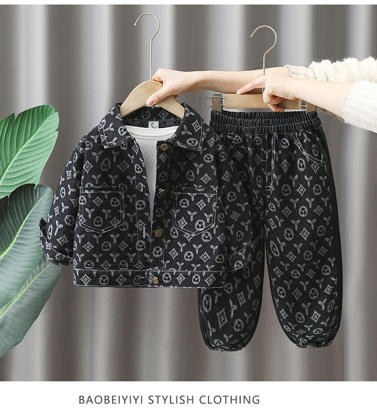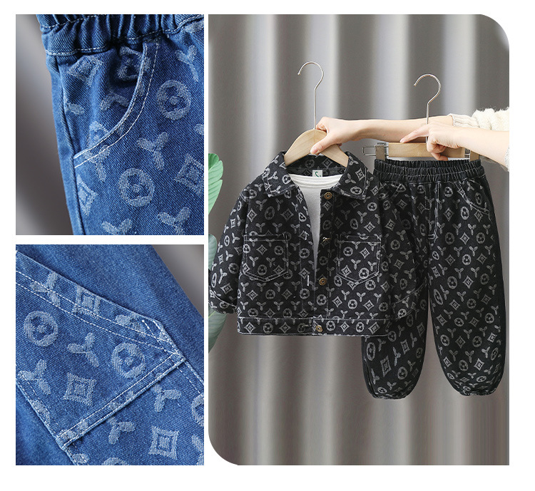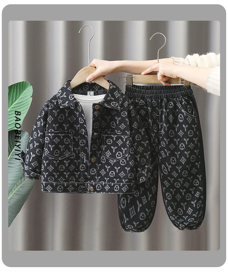 5984 Traje negro para niños 2024 Nuevo estilo de primavera y otoño para niños Ropa de mezclilla jacquard Traje de dos piezas de otoño fresco y atractivo