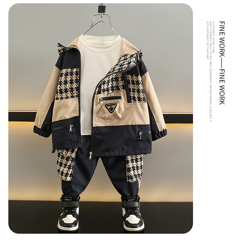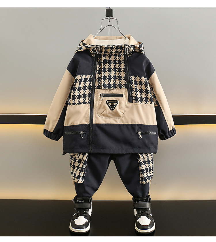 5981 traje de niño 2024 ropa casual de primavera y otoño para niños nuevos, traje de dos piezas a juego de colores de otoño para niños guapos