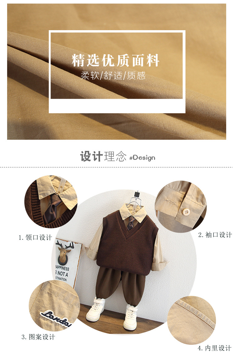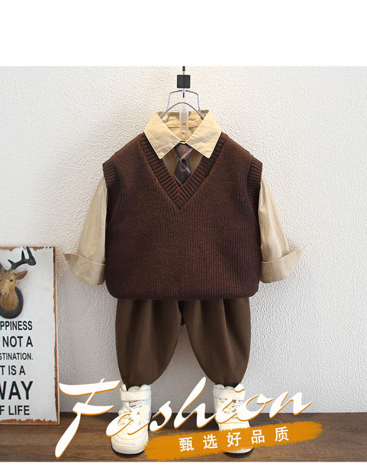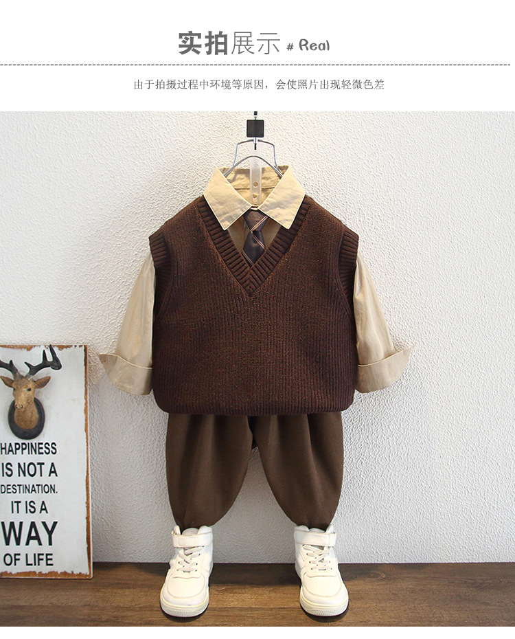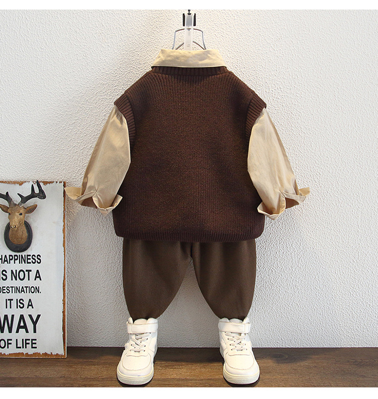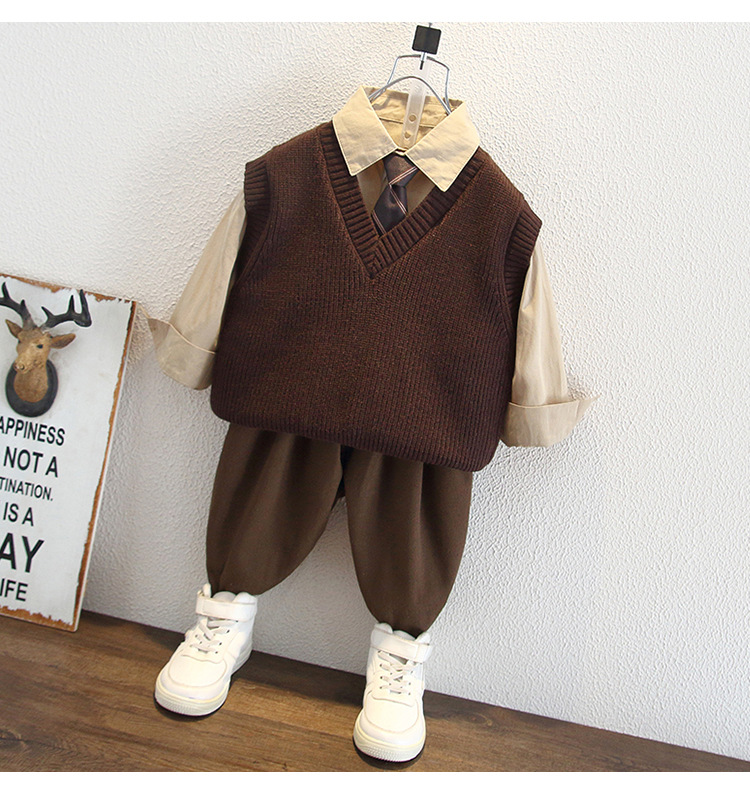 5955 Ropa para niños Traje de otoño para niños 2025 Nuevos niños Camisa de primavera y otoño Chaleco de lana Traje de tres piezas