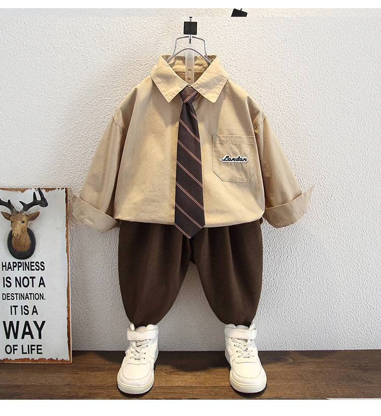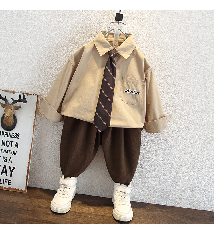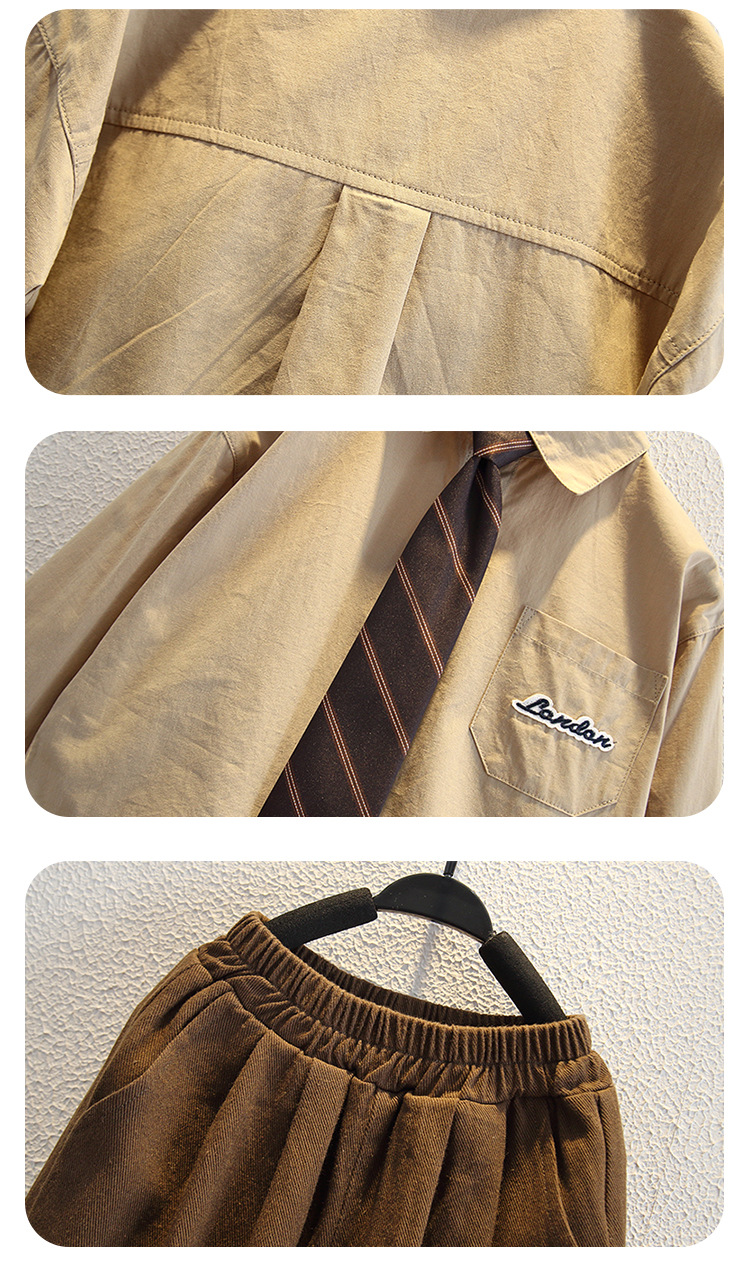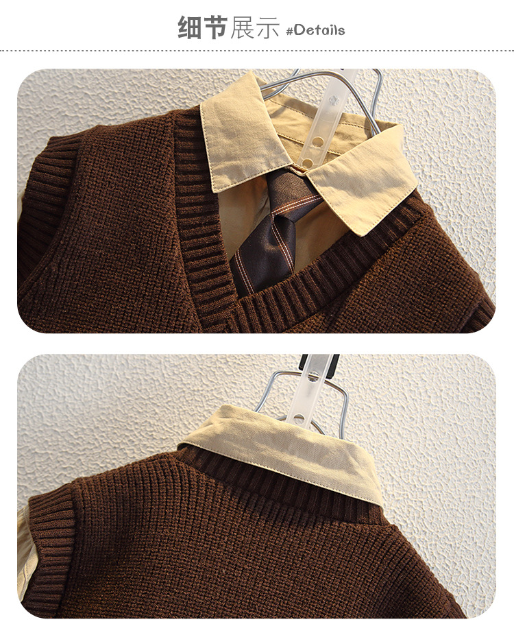 5955 Ropa para niños Traje de otoño para niños 2025 Nuevos niños Camisa de primavera y otoño Chaleco de lana Traje de tres piezas