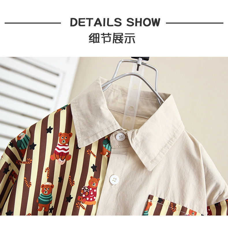 5934 Traje de otoño para niños 2025 Camisa de manga larga de primavera y otoño para niños de nuevo estilo Camisa coreana de dos piezas