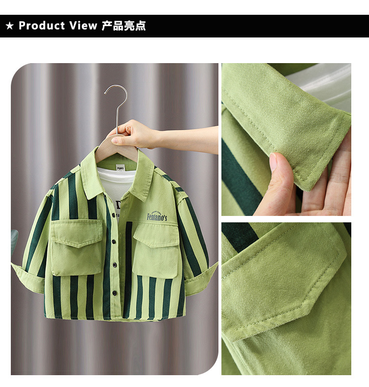 5904 Chaqueta de camisa para niños 2025 nuevo estilo cool guapo chico blusa de rayas de otoño para niños chaqueta de primavera y otoño marea