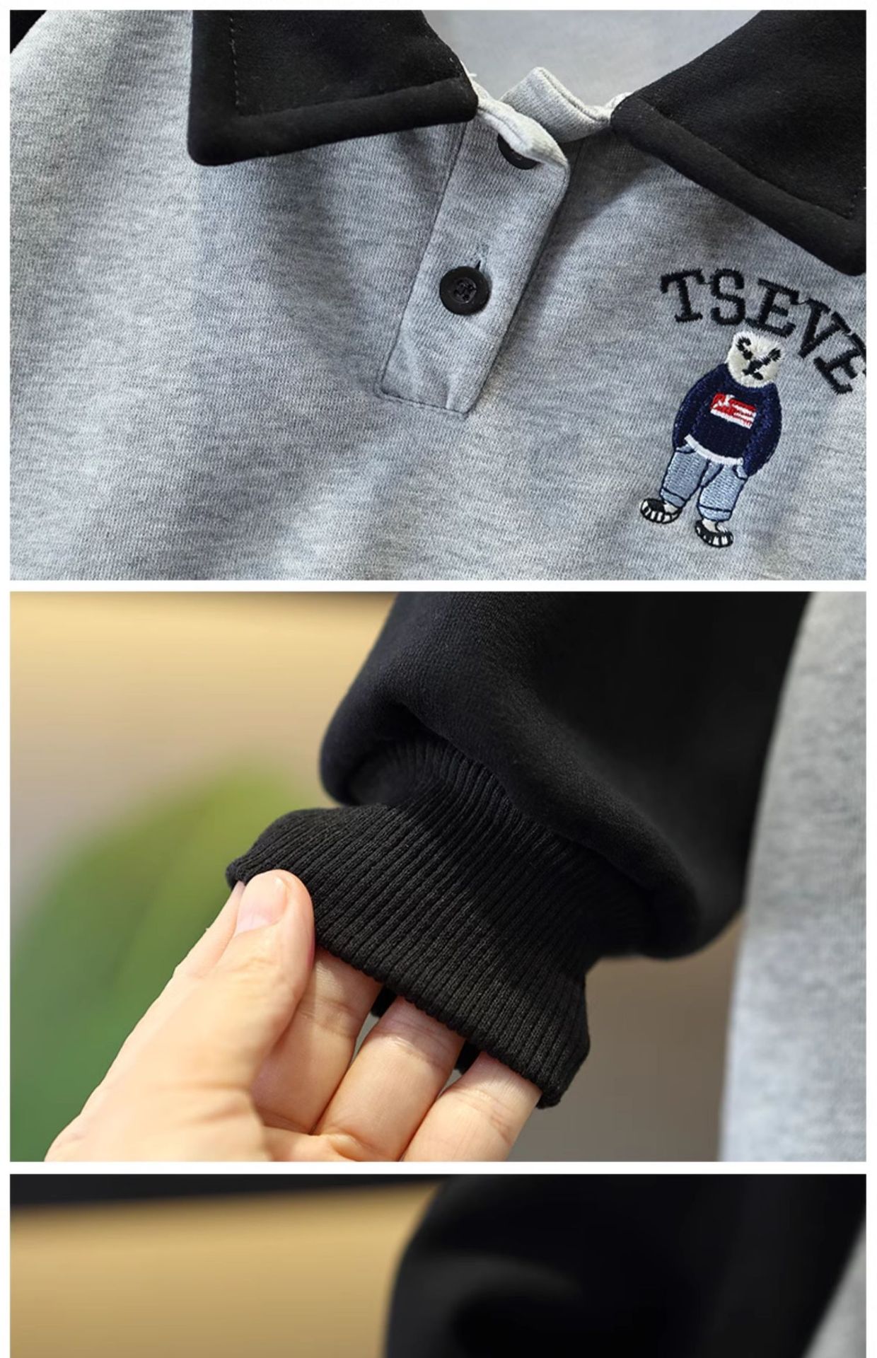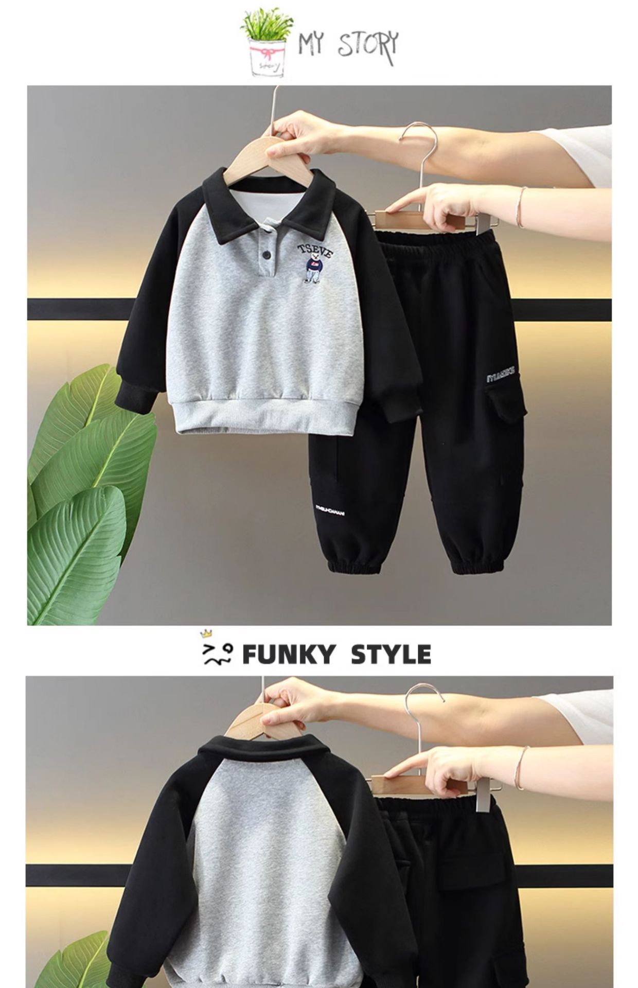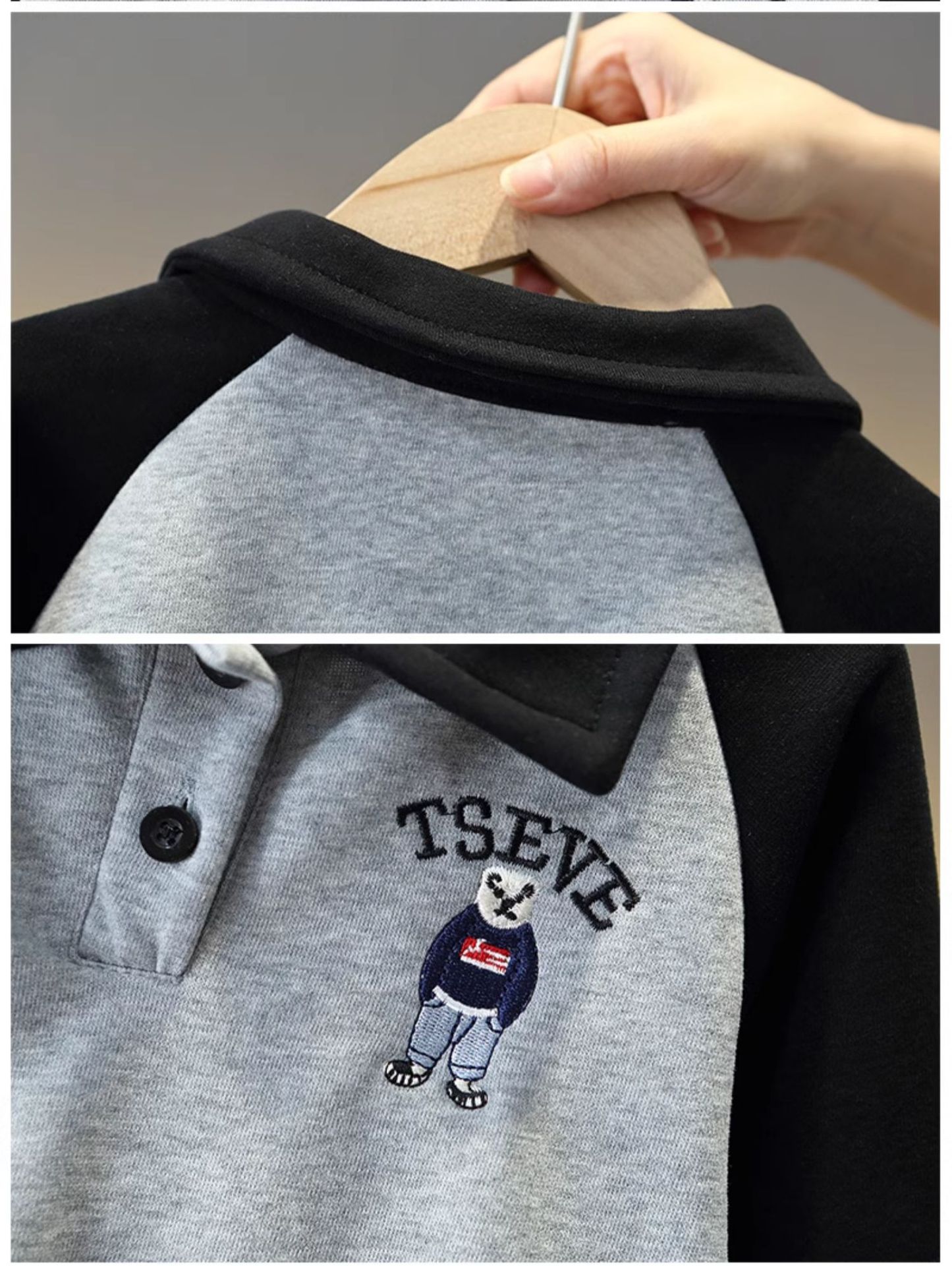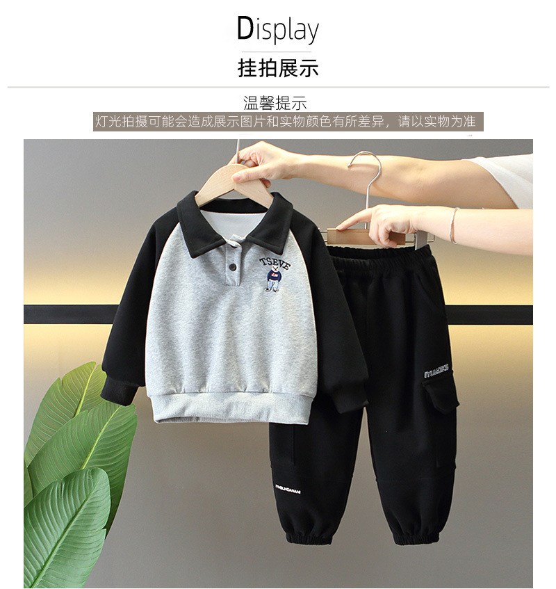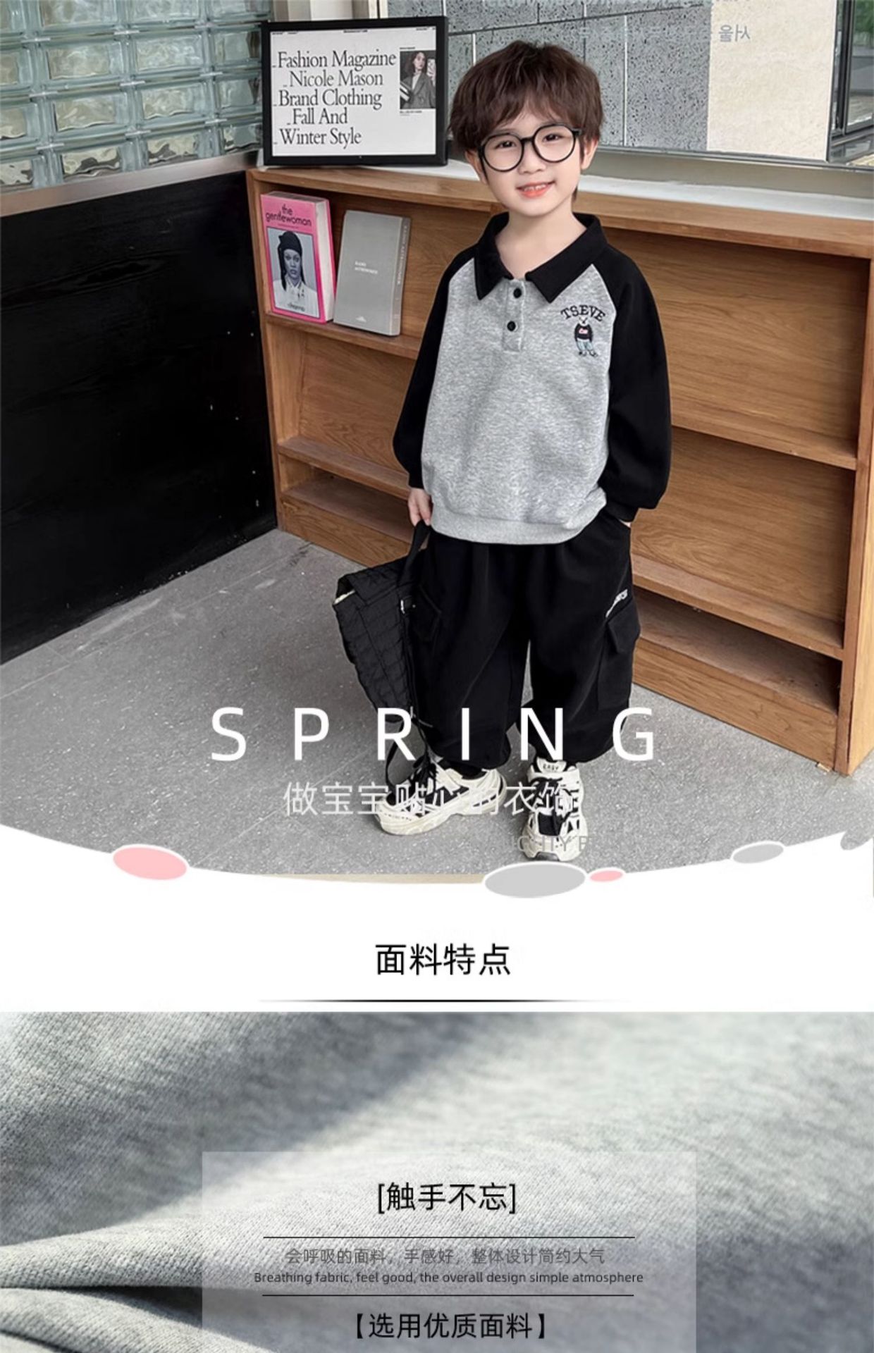 5913 traje de suéter de otoño para niños 2025 nuevo estilo guapo bebé chico polo para niños primavera y otoño traje de dos piezas