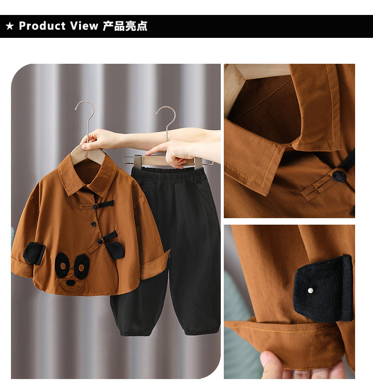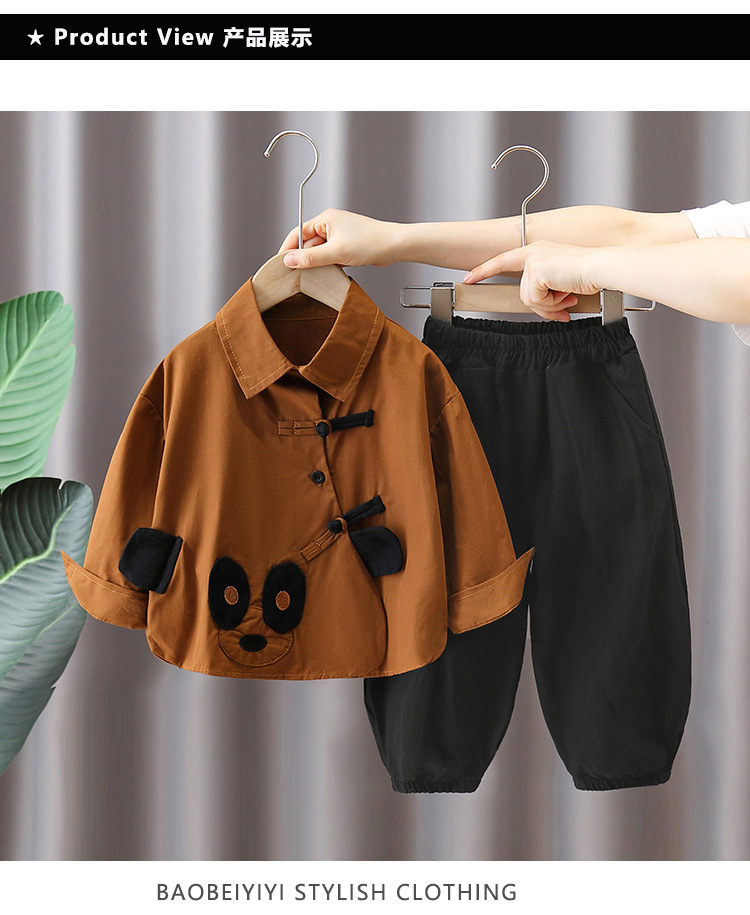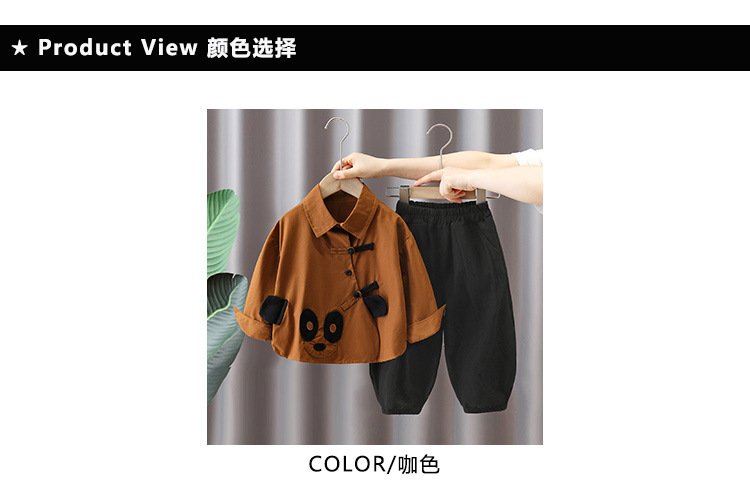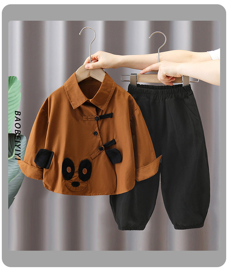 5919 Traje de otoño para niños Camisa de panda de dibujos animados para niños 2025 nuevo traje de dos piezas de celebridades de Internet de primavera y otoño para bebés