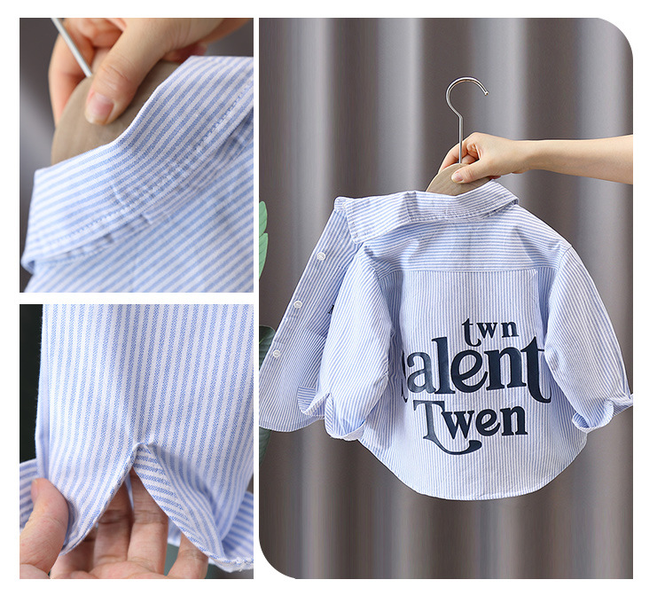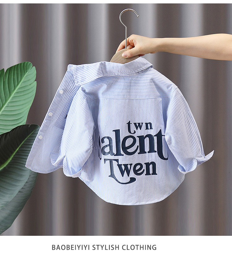 5906 Camisa a rayas para niños 2024 nueva primavera y otoño ropa para niños camisa con estampado de letras para niños estilo otoño para bebés