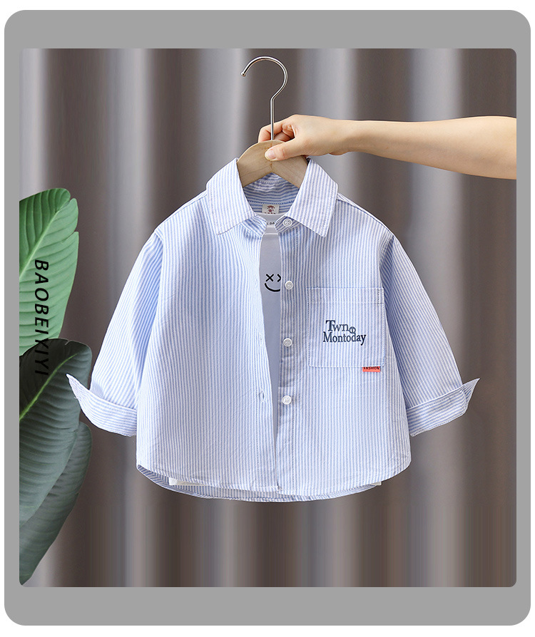 5870 camisa a rayas para niños 2025 nueva primavera y otoño ropa para niños camisa con estampado de letras para niños estilo otoño para bebés