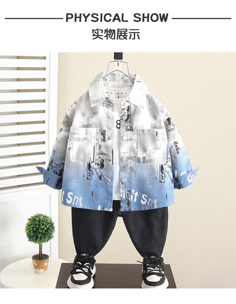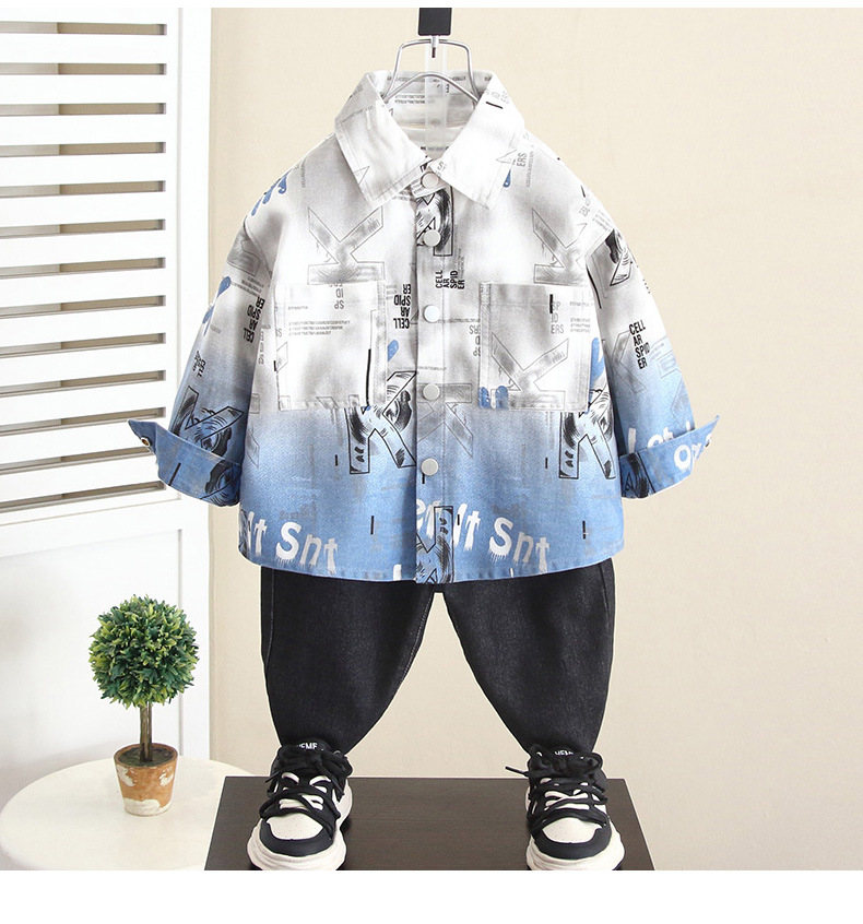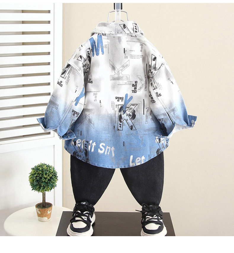 5896 Chaqueta de primavera y otoño para niños Camisa de manga larga de estilo occidental de otoño para niños 2024 nueva ropa de otoño para hombres guapos de moda