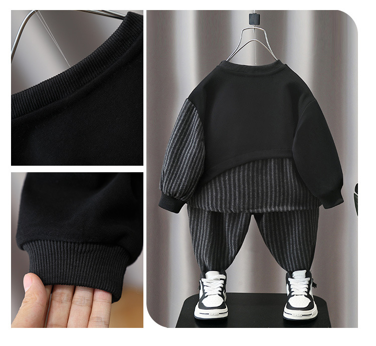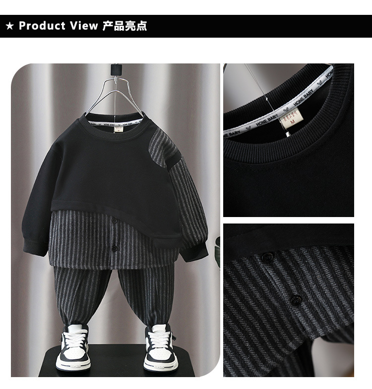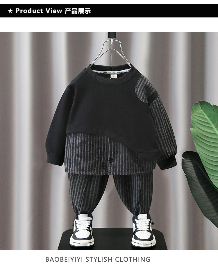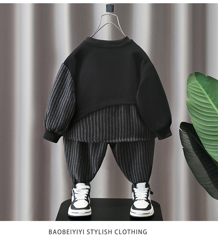 5855 Traje de otoño para niños 2025 Nuevo estilo Estilo occidental Ropa a rayas con costuras para bebés Traje de dos piezas de primavera y otoño para niños