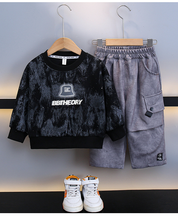 5850 traje de suéter para niños 2025 nuevo estilo estilo occidental ropa de primavera y otoño para bebés, traje de dos piezas de ropa de otoño atractivo para niños
