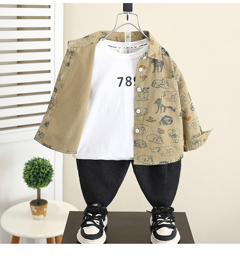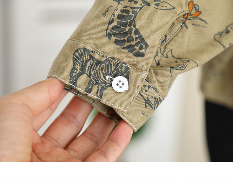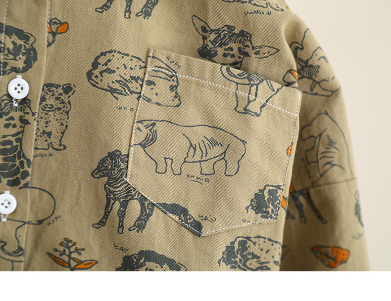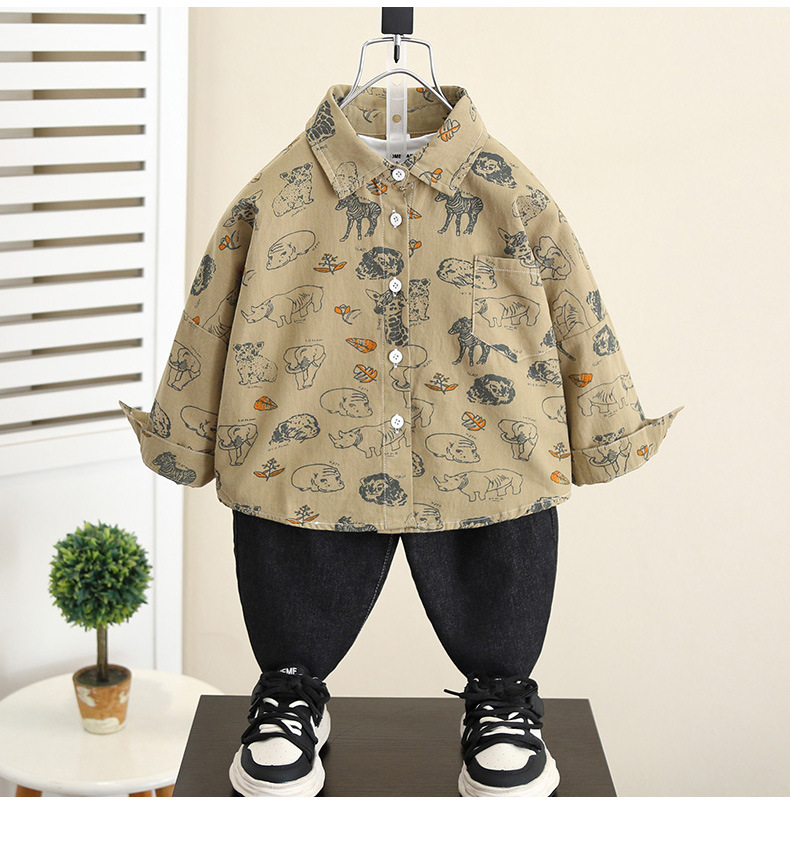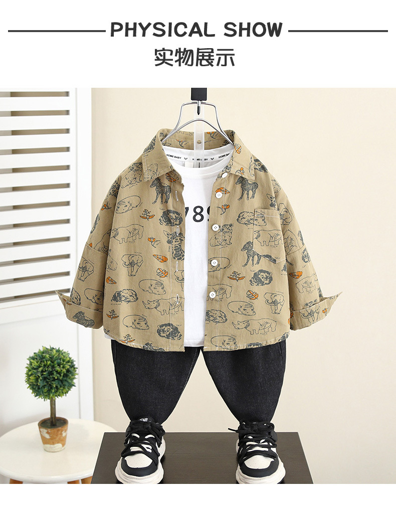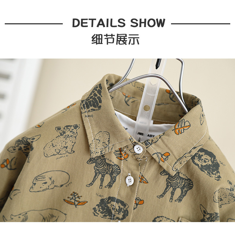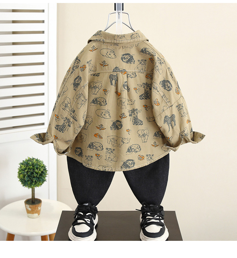 5837 Camisa de dibujos animados para niños Primavera y otoño para niños Camisa coreana de manga larga de estilo occidental 2025 nueva chaqueta para niños