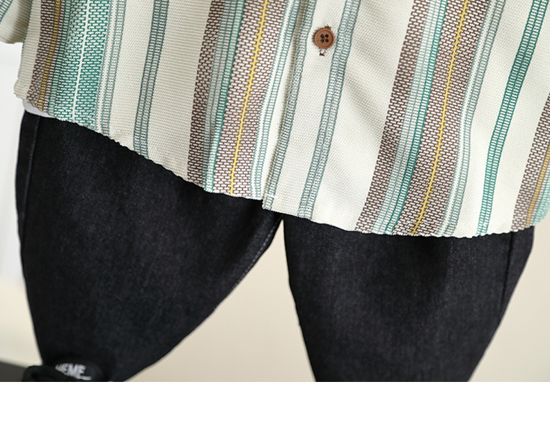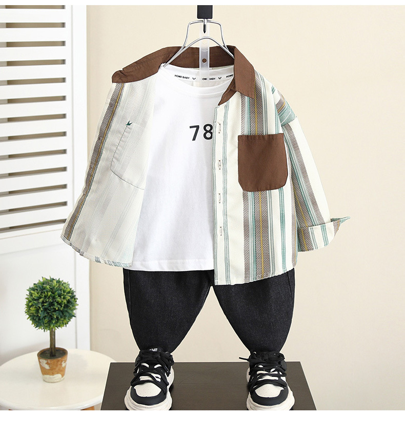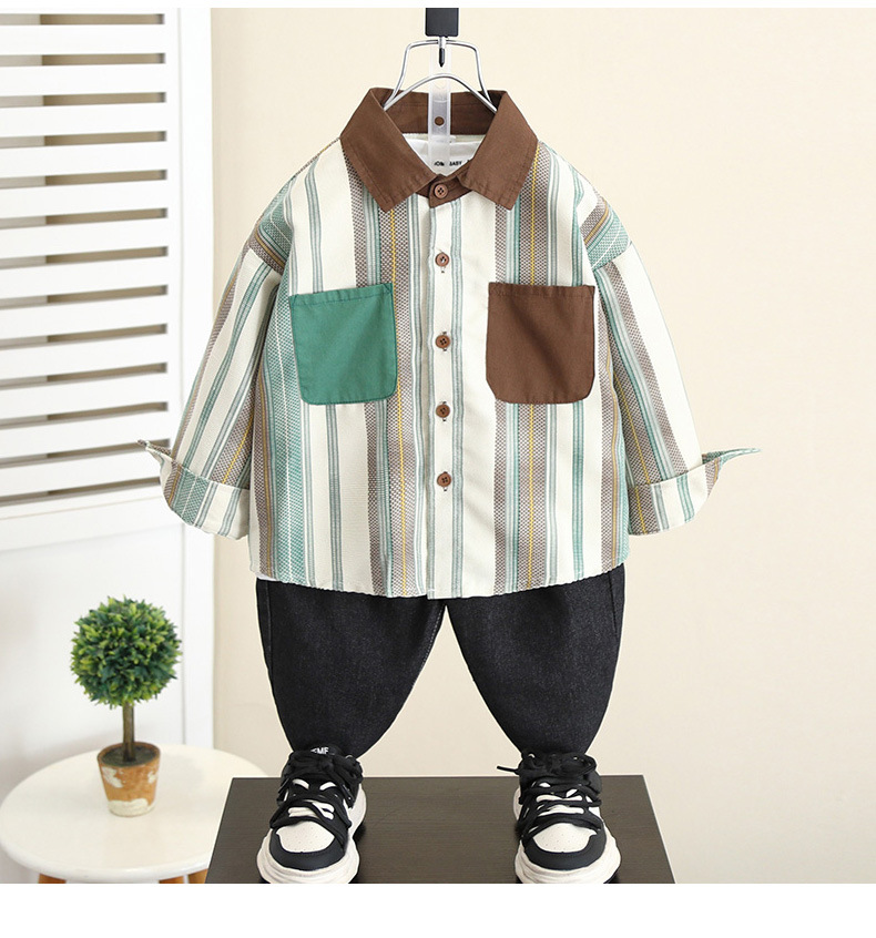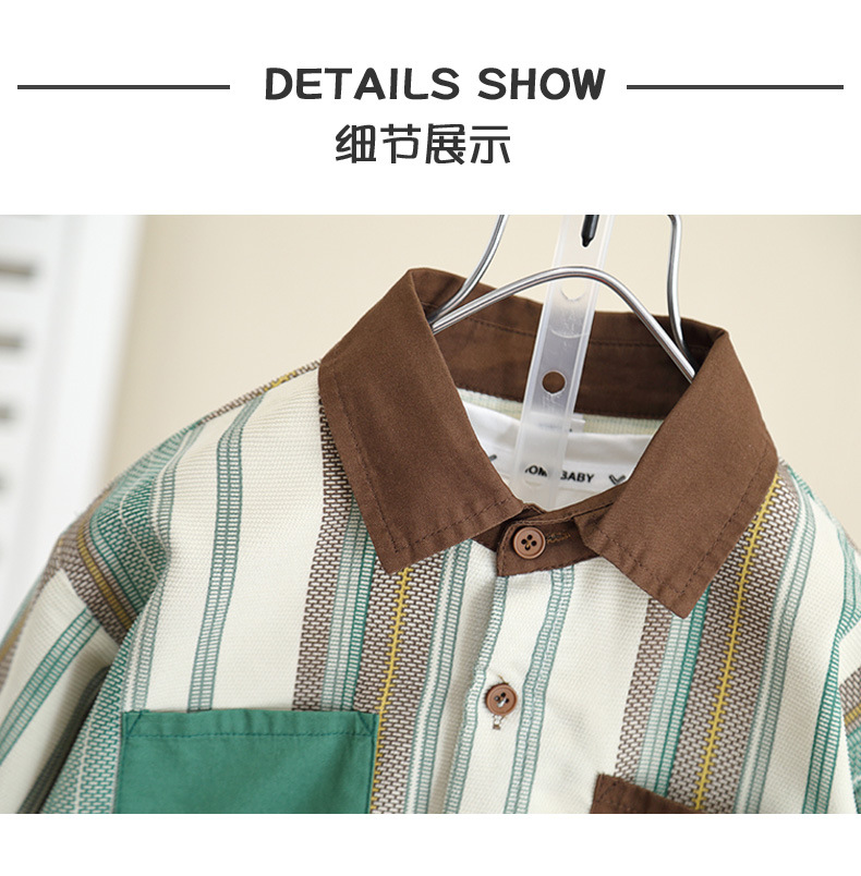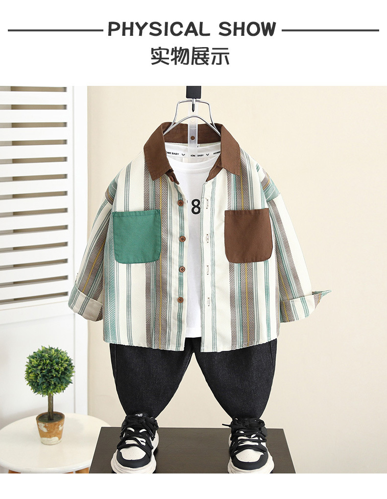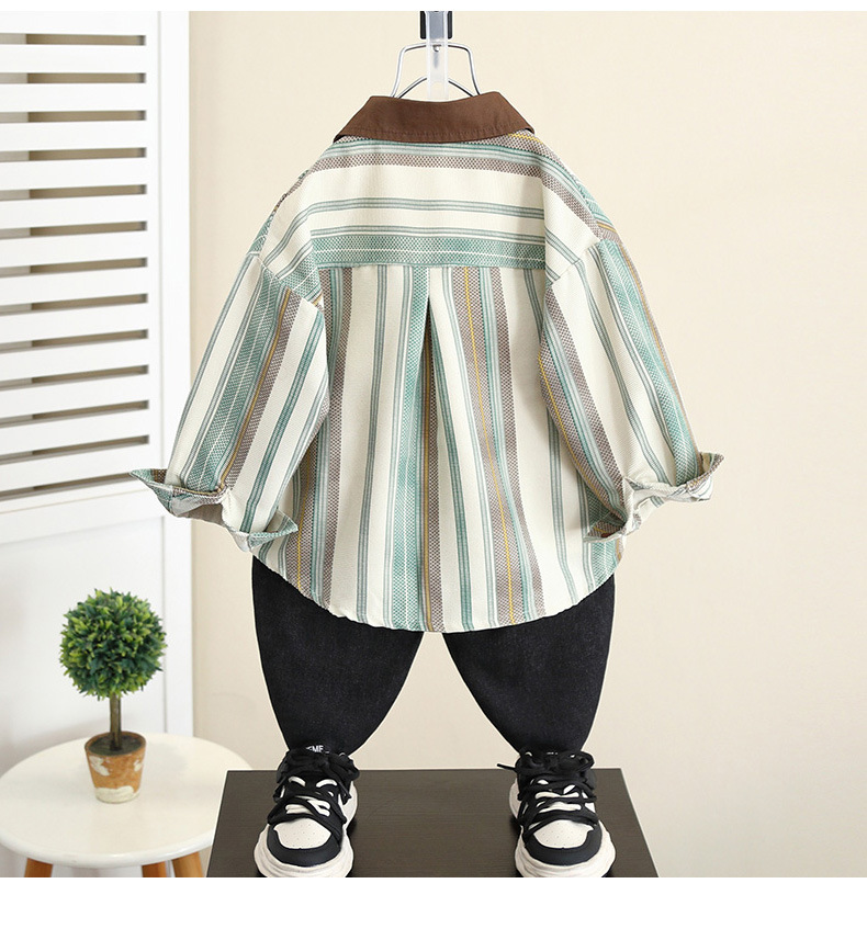 5827 chaqueta de camisa para niños primavera y otoño 2025 nuevo bebé otoño versión coreana camisa de manga larga para niños blusa a rayas