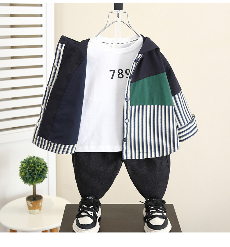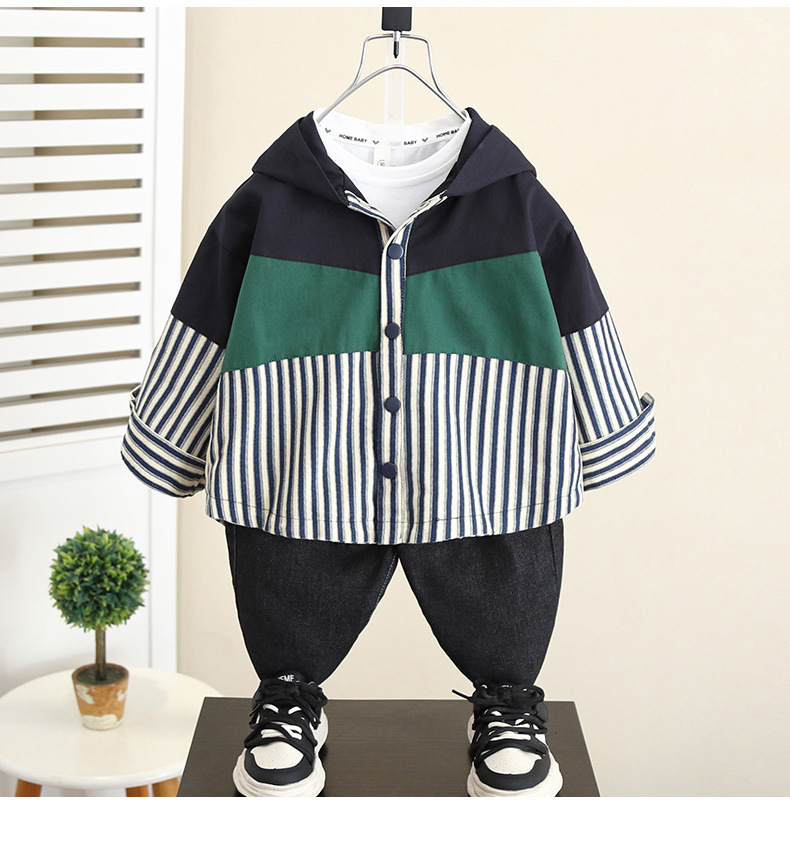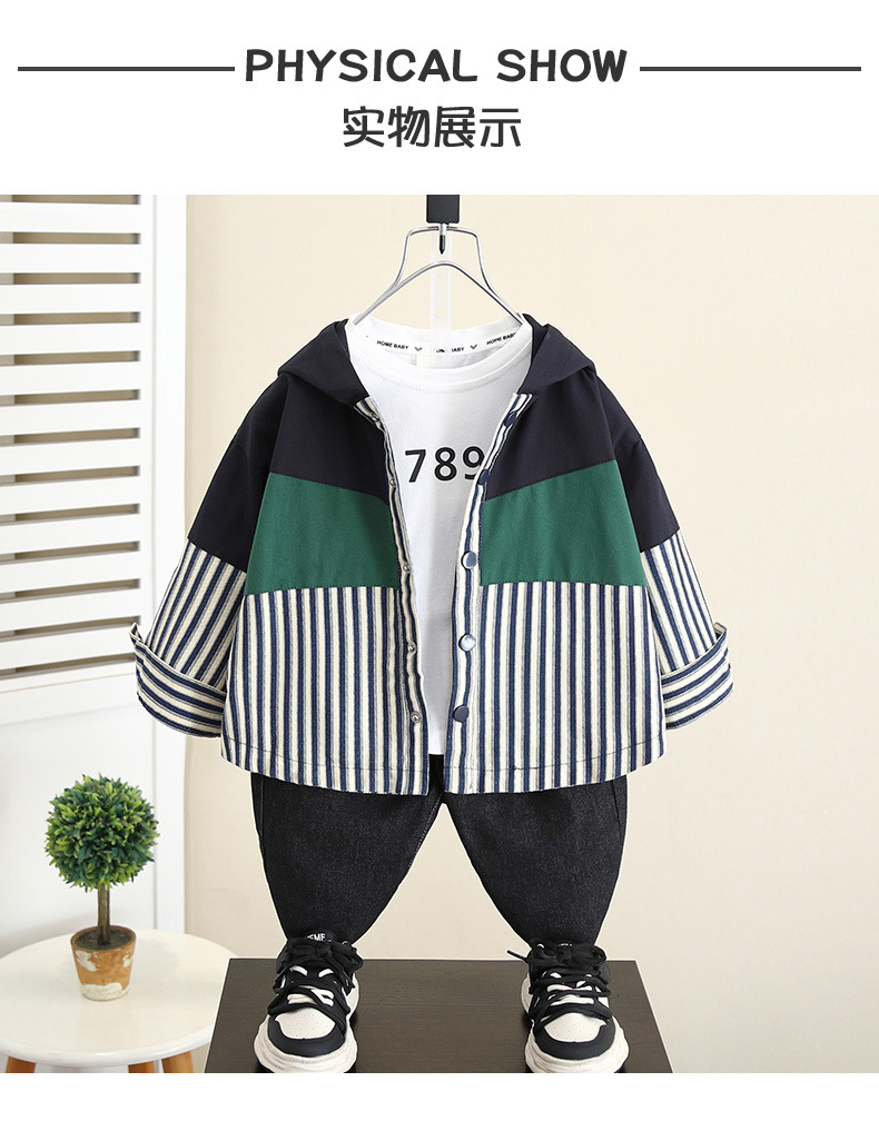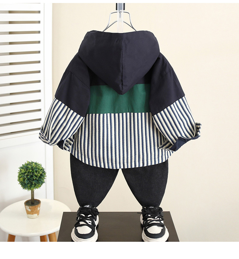 5829 chaqueta de niño primavera y otoño 2025 nueva chaqueta con capucha a rayas de otoño para niños coreanos top casual de bebé