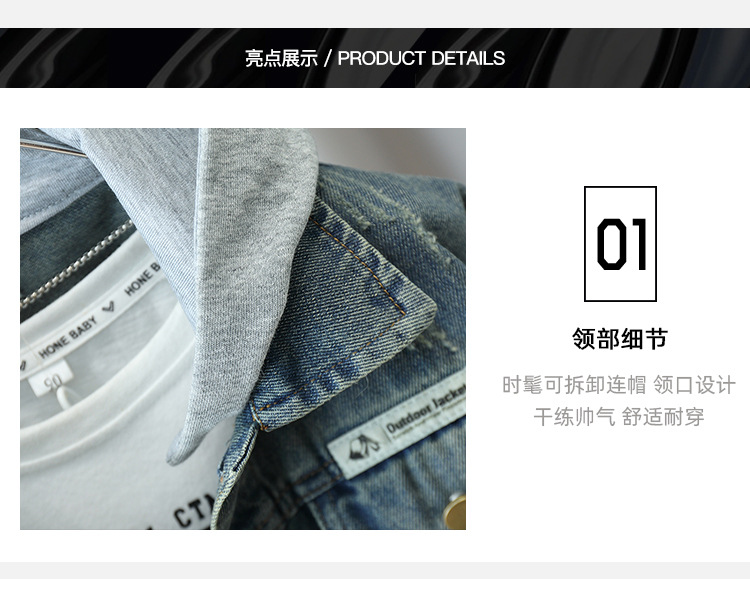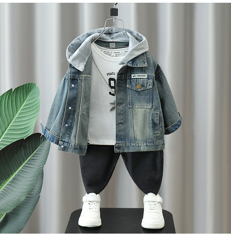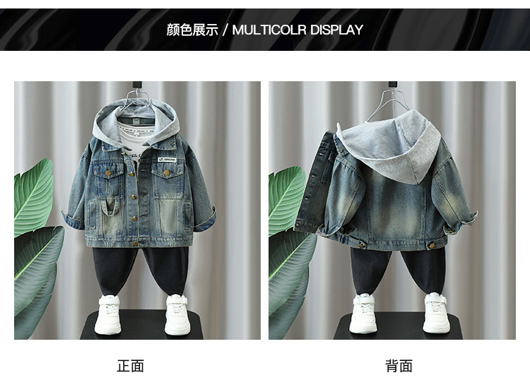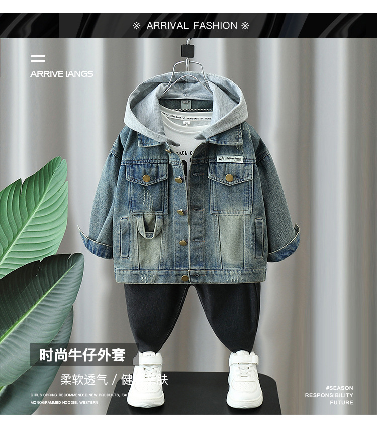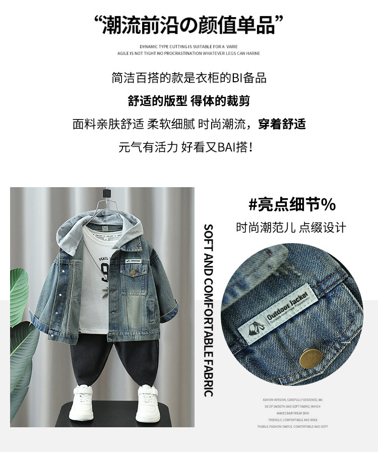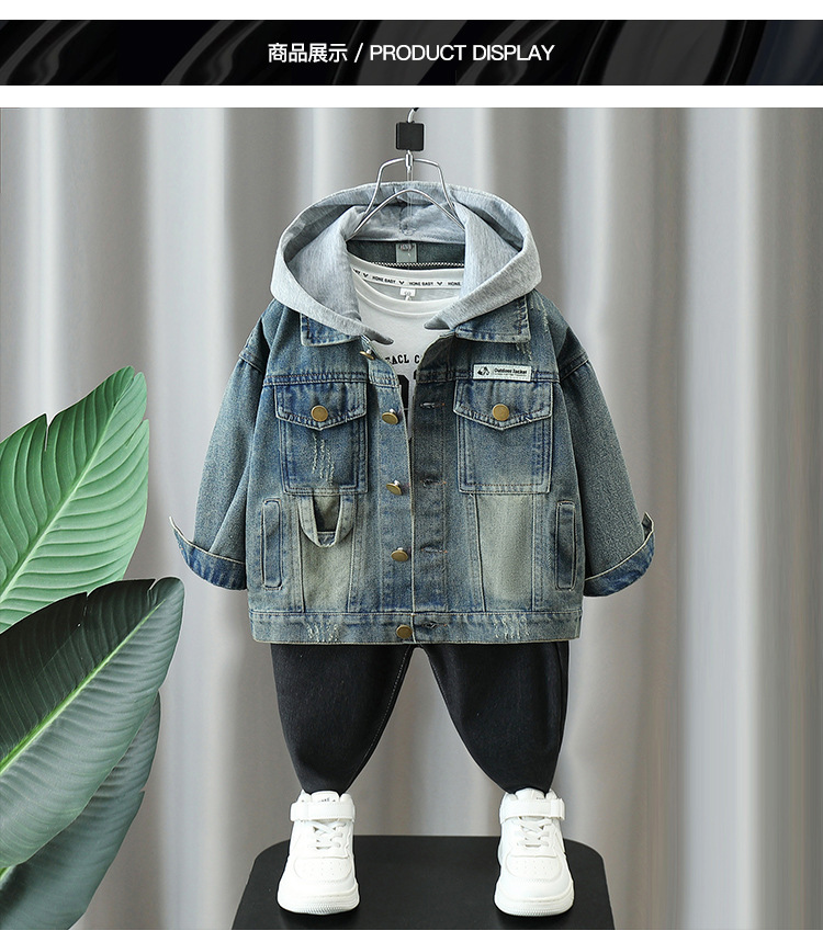 5770 Chaqueta de mezclilla para niños 2025 otoño nuevo estilo de los niños etiquetado chaqueta de mezclilla con capucha chaqueta de bebé estilo de moda