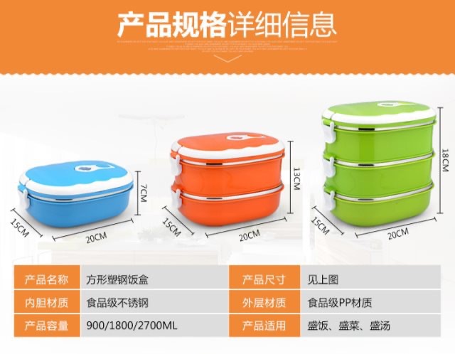 Strictamente seleccionada caja de almuerzo de acero inoxidable rectangular multi-capa lonchera caja de almuerzo de plástico sellado de acero crujiente transfronteriza