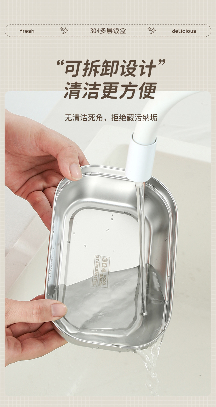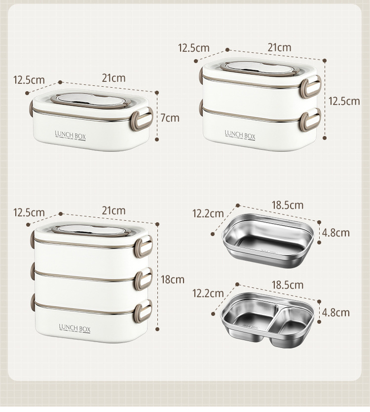 304 de acero inoxidable cuadrado aislado lonchera trabajador de oficina estudiante cantina horno microondas calefacción multi-capa compartimiento Bento