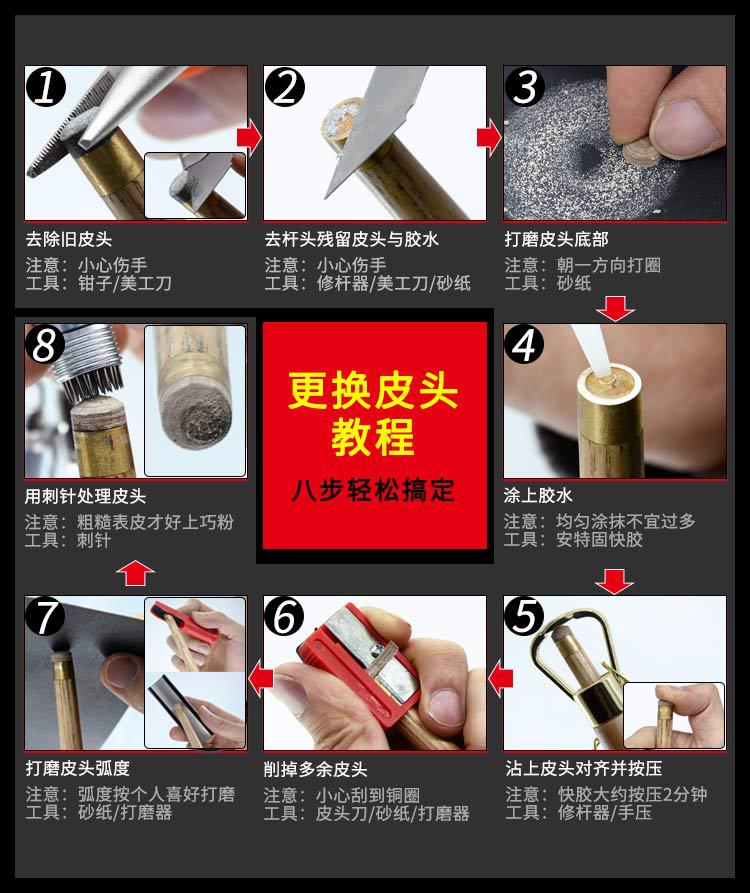 Taco de billar, punta de cuero, punta de pistola de secado rápido, pegamento especial, palo de cabeza pequeña, palo de cabeza grande, mesa de nueve palos de billar, pegamento 401