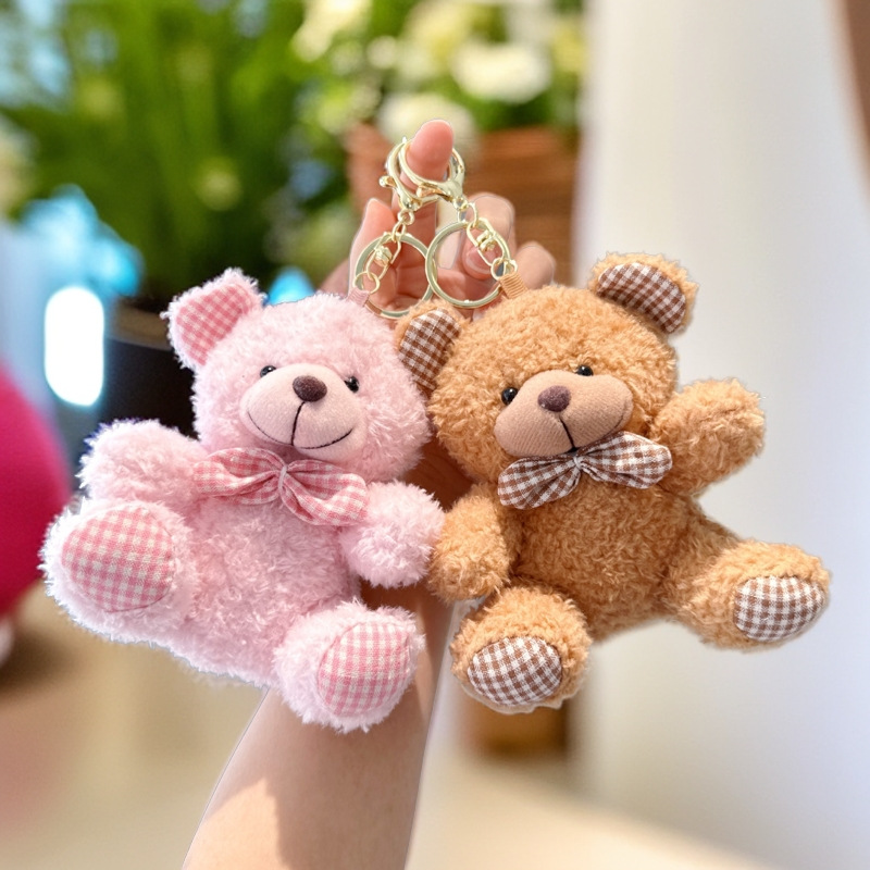 Pajarita de estilo explosivo, oso de peluche rizado, muñeco de peluche, oso, llavero, colgante, accesorios de bolso, muñeco de trapo