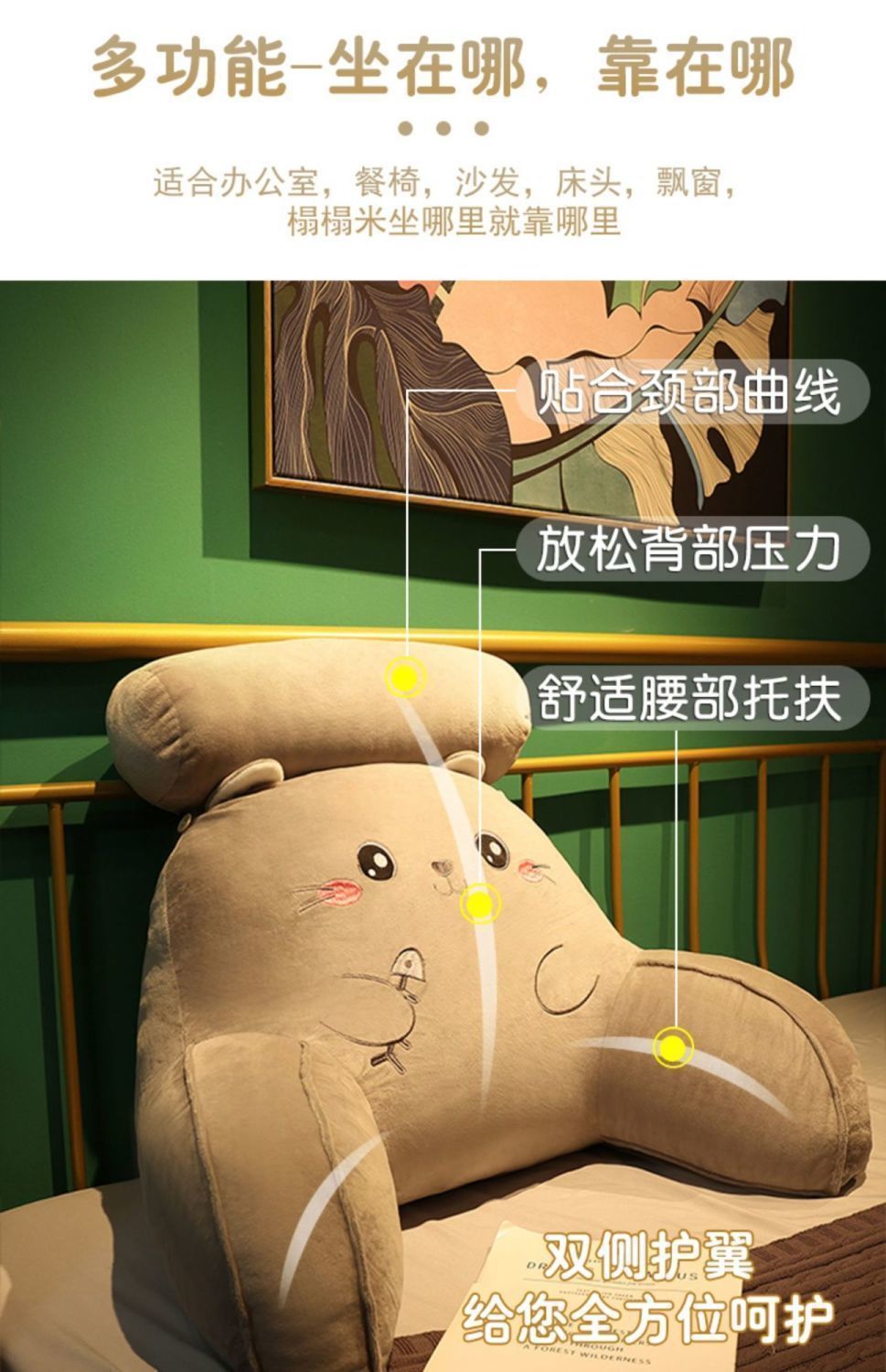Estera de verano Cojín de cabecera Bolsa suave Almohada de respaldo grande Sofá de dormitorio Cama de lectura Almohada de cintura Almohada