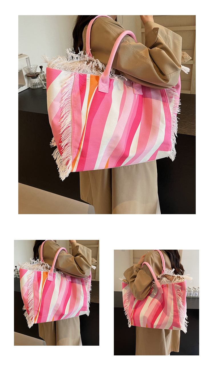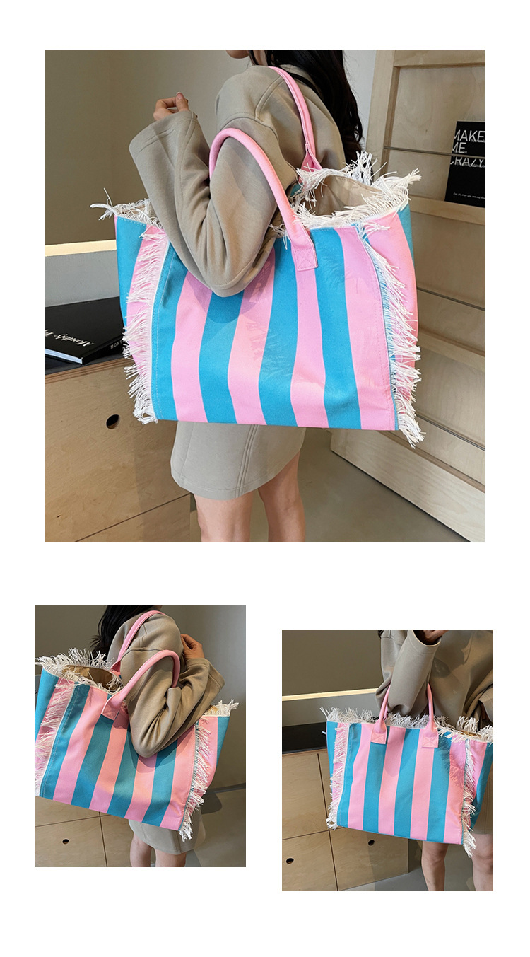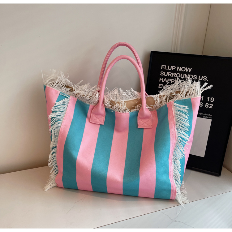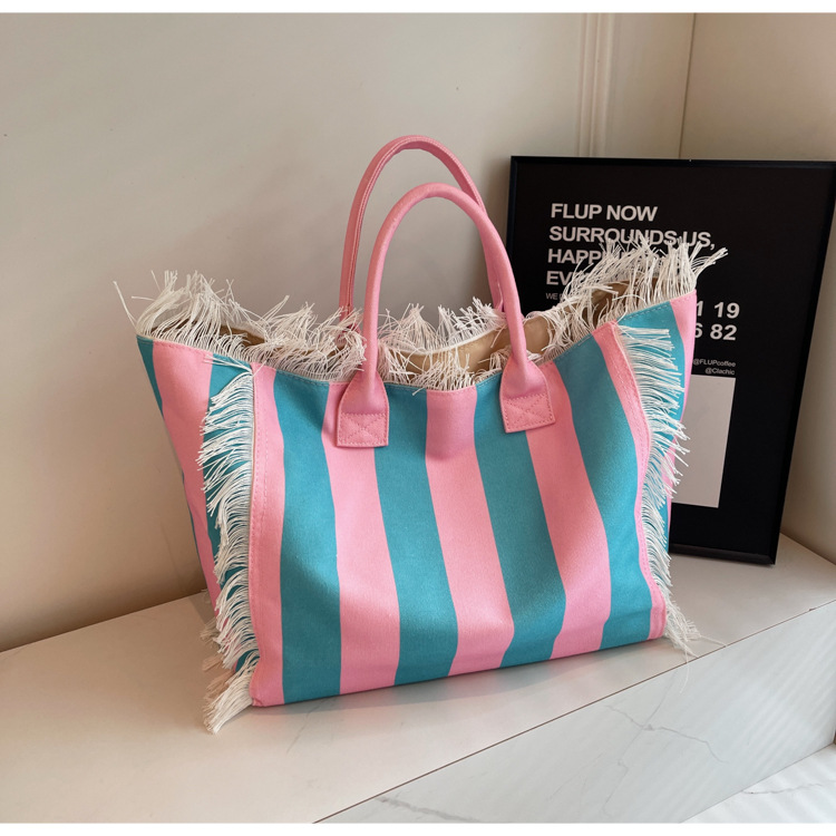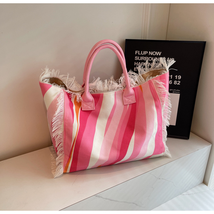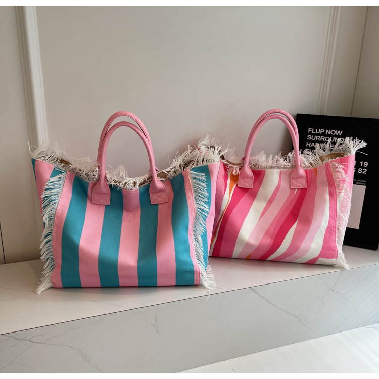Bolsa de lona a rayas, bolsa de hombro de gran capacidad, bolsa de moda, bolsa de bolsa casual, bolsa de compras para damas