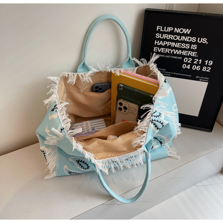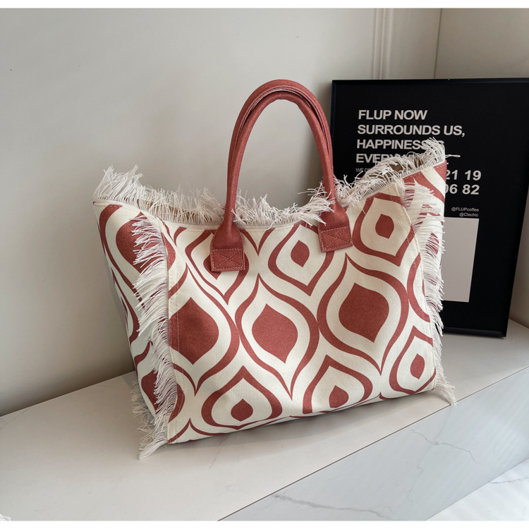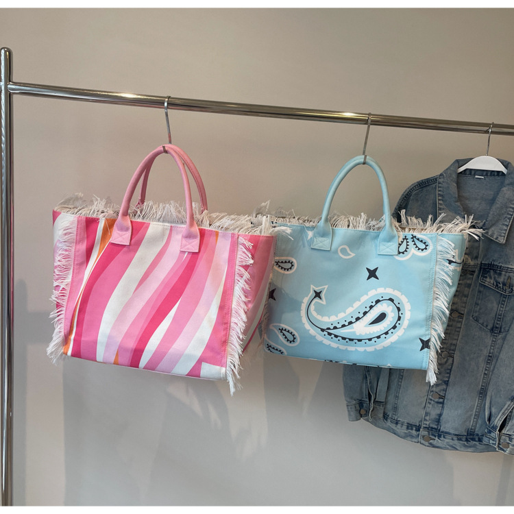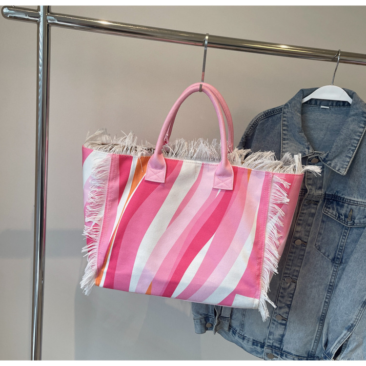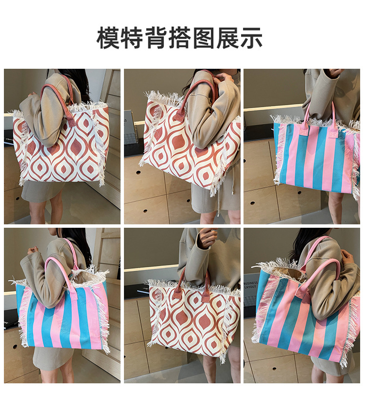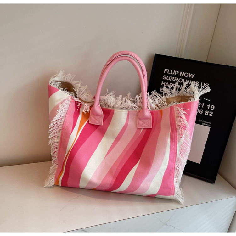 Bolsa de lona a rayas, bolsa de hombro de gran capacidad, bolsa de moda, bolsa de bolsa casual, bolsa de compras para damas