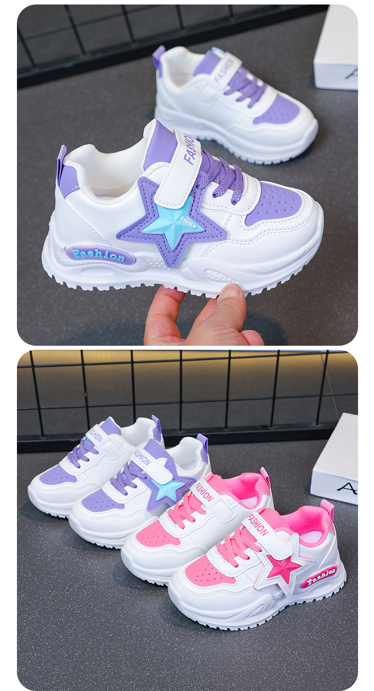 Calzado deportivo para niñas 2025 primavera y otoño nuevo estilo para niños estrellas moda zapatos de papá de suela suave zapatos para correr casuales antideslizantes