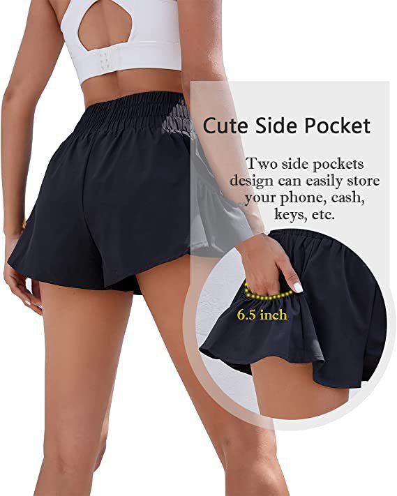 2023 Amazon transfronterizo verano caliente fitness de mujer corriendo pantalones cortos de cintura alta de mujer de secado rápido con bolsillos