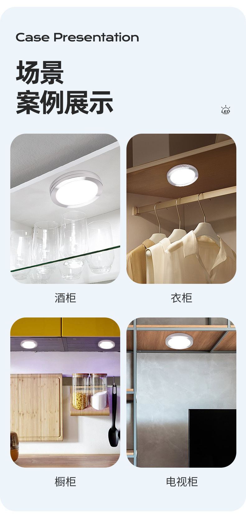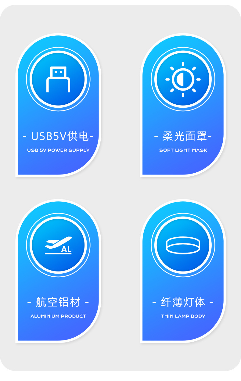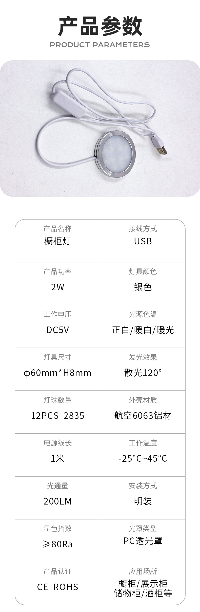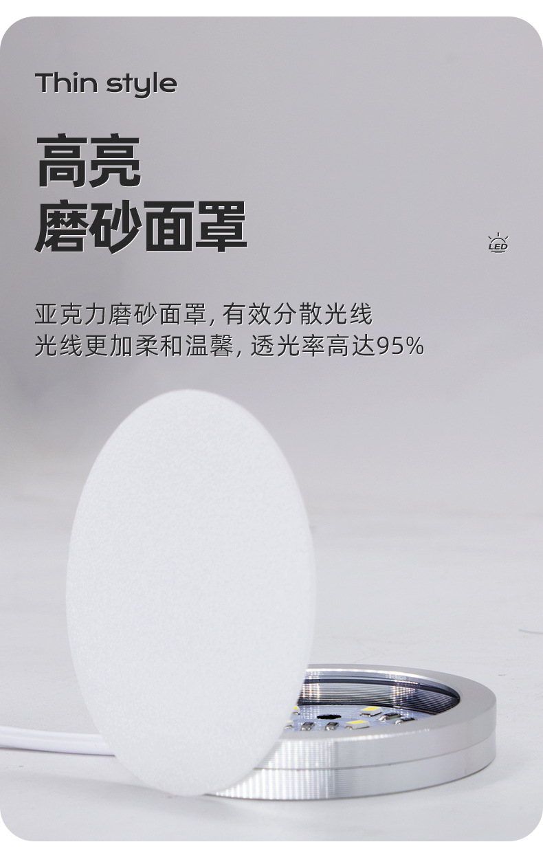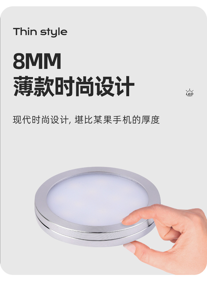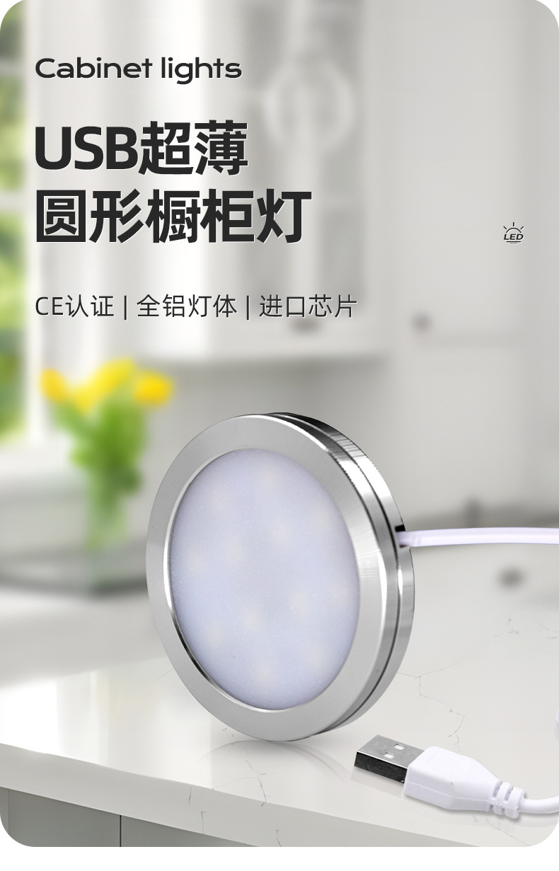 Lámpara de gabinete LED ultrafina, lámpara redonda de 5V, vitrina de bajo voltaje, escritorio, lámpara de decoración de dormitorio, luz redonda pequeña usb de montaje de exposición transfronteriza