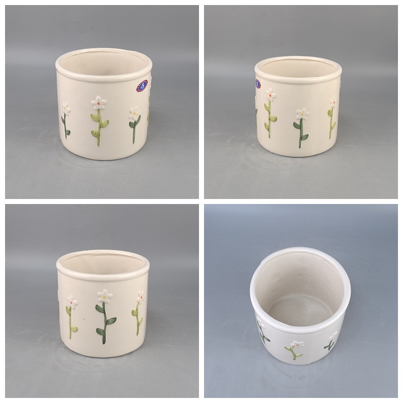 Flores en relieve de estilo chino, vasijas de cerámica pintadas a mano, jarrones para sala de estar, decoraciones de entrada, muebles para el hogar, decoración suave