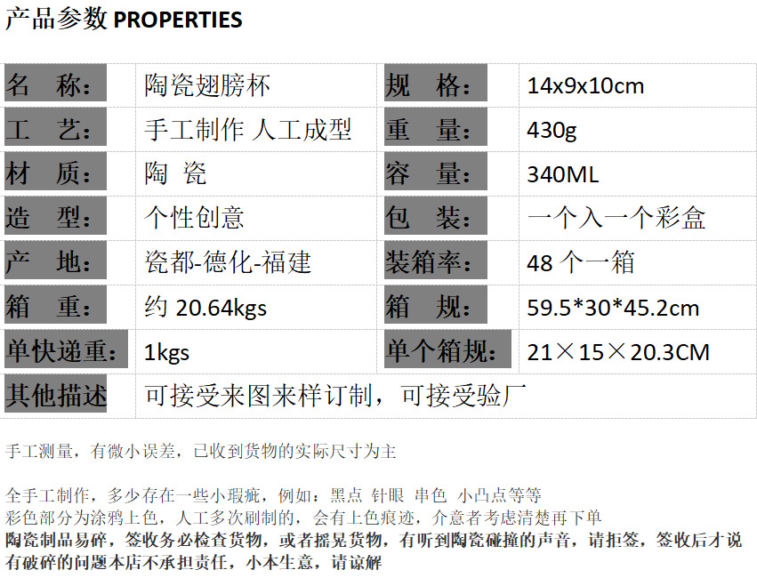 | Colores | Taza de alas de cerámica |