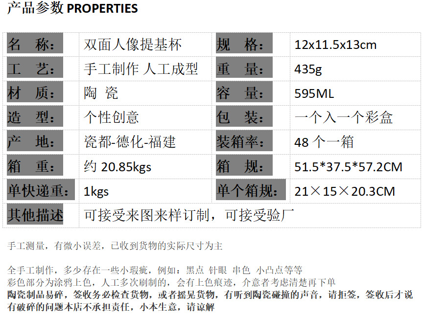 | Color | Copa tiki de retrato de doble cara de cerámica |