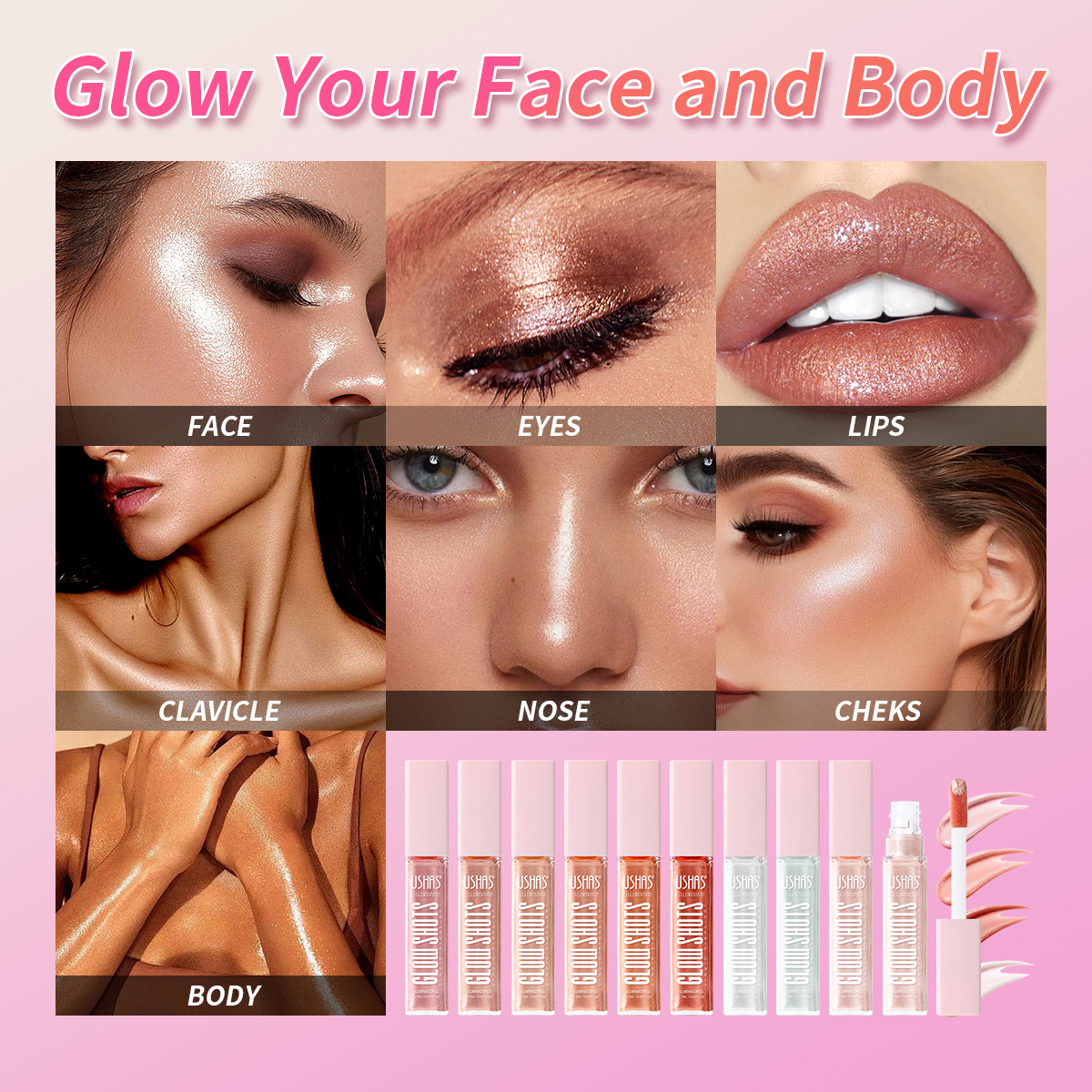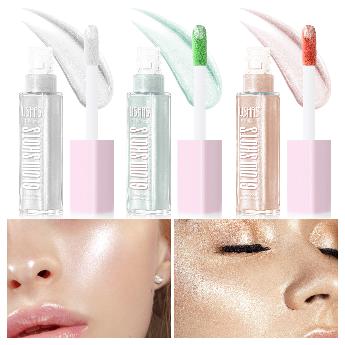 USHAS europeo y americano punto transfronterizo líquido de alto brillo impermeable y duradero contorno brillante líquido sedoso FS459B