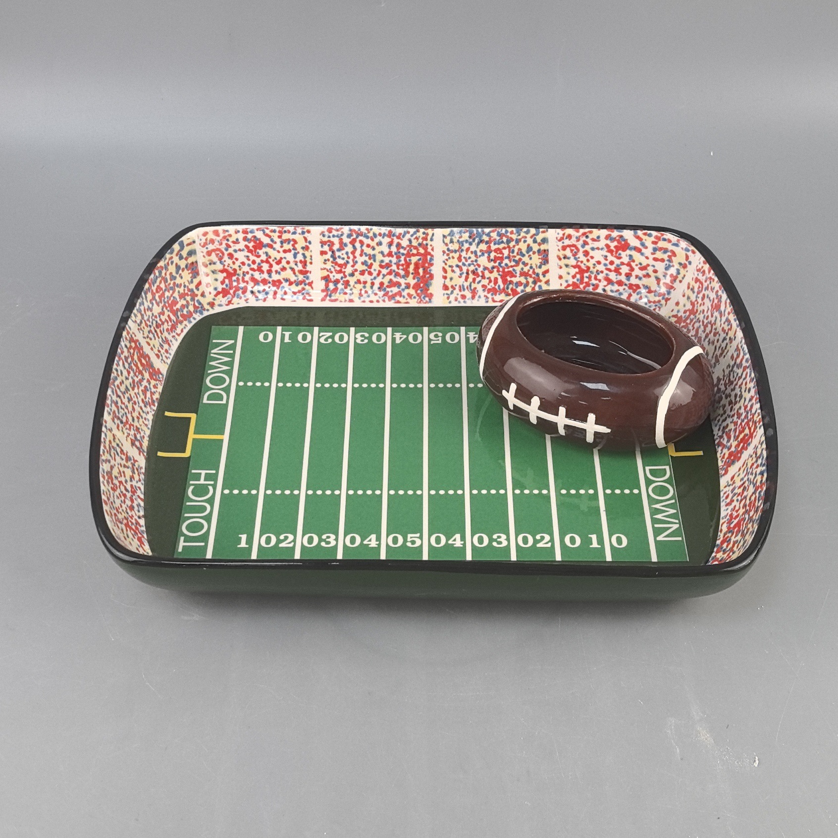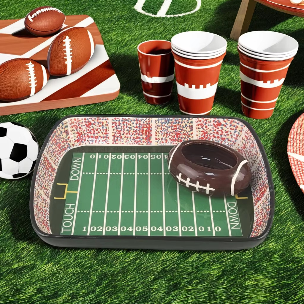 Conjuntos de platos de cerámica bandeja de fiesta de rugby transfronteriza patatas fritas de arroz estilo de barco de cumpleaños decoración de la puerta trasera