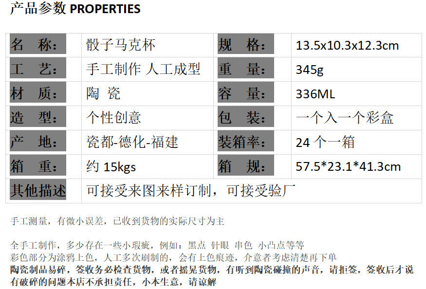 | Color | Copa de cerámica de dados rojos |