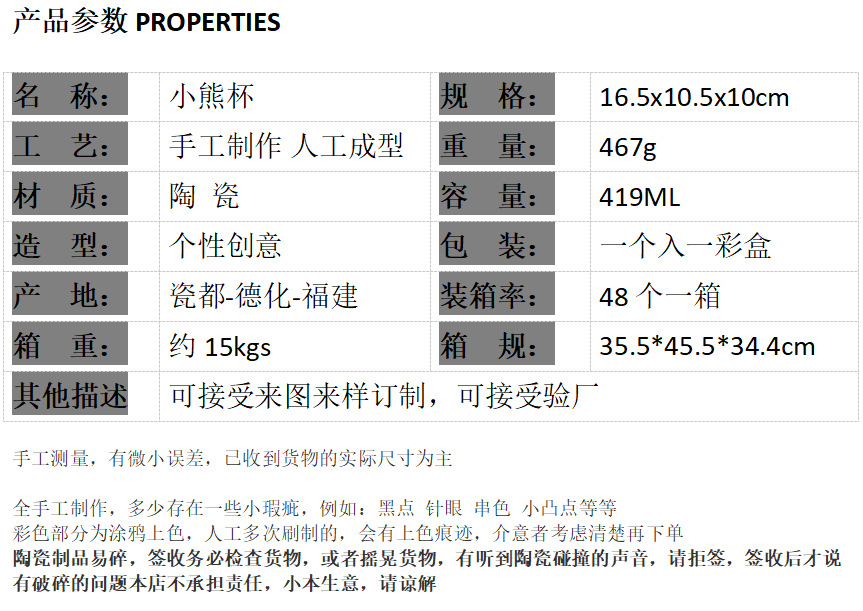 | Colores | Taza de cerámica de oso |