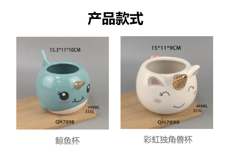 Taza de cerámica de la serie de unicornios Taza de café de ballenas Taza de cerámica pintada a mano Taza de cerámica 3D Caballo de arco iris