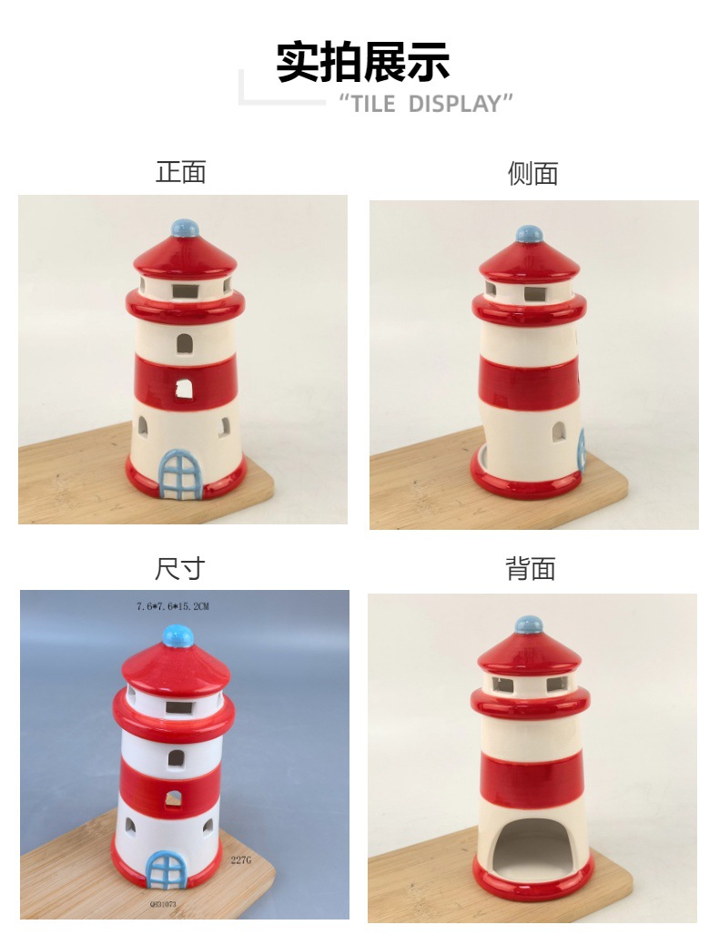Estilo marino colorido faro de cerámica candelabro vela hueca decoración de la habitación decoración del hogar decoración del festival personalizado de Navidad